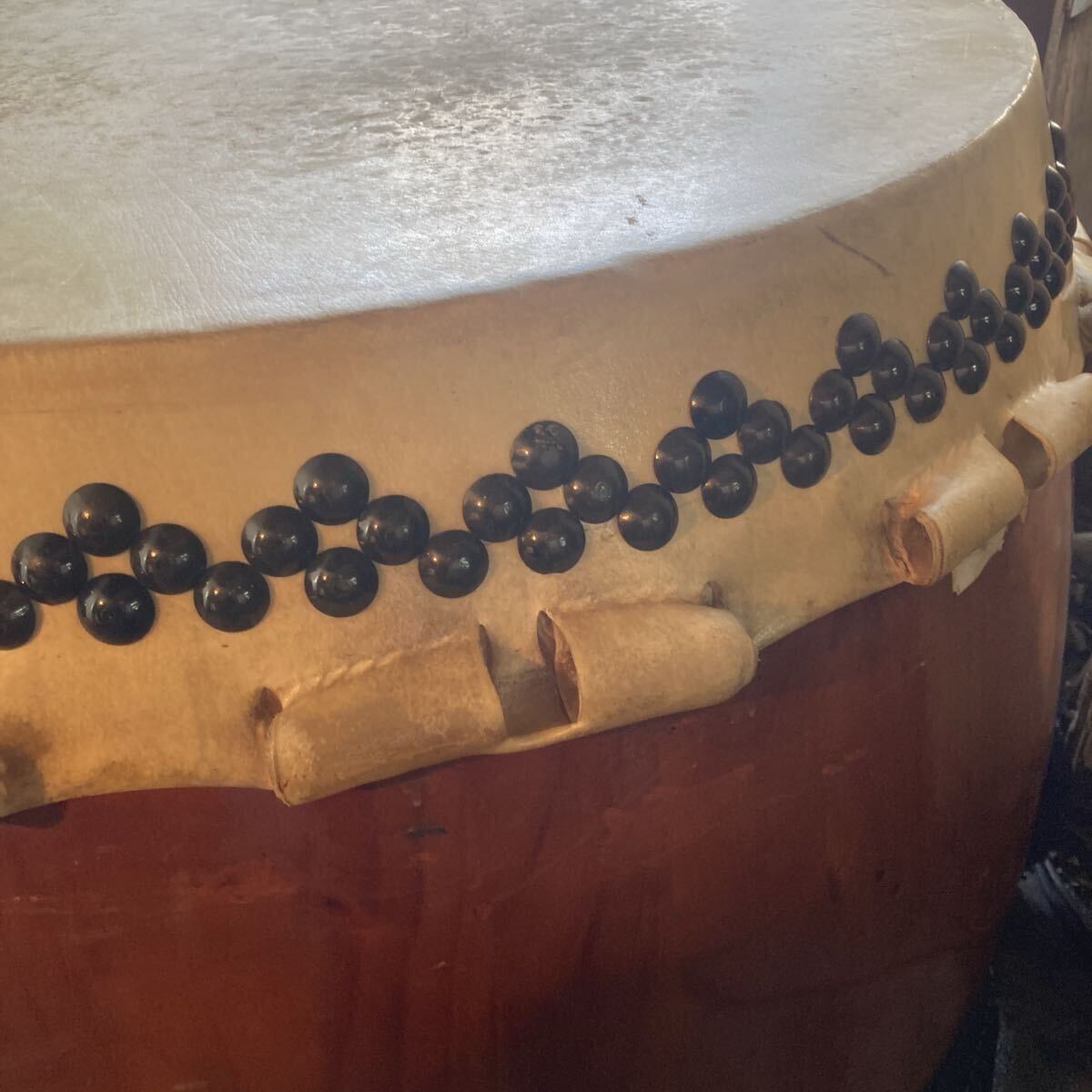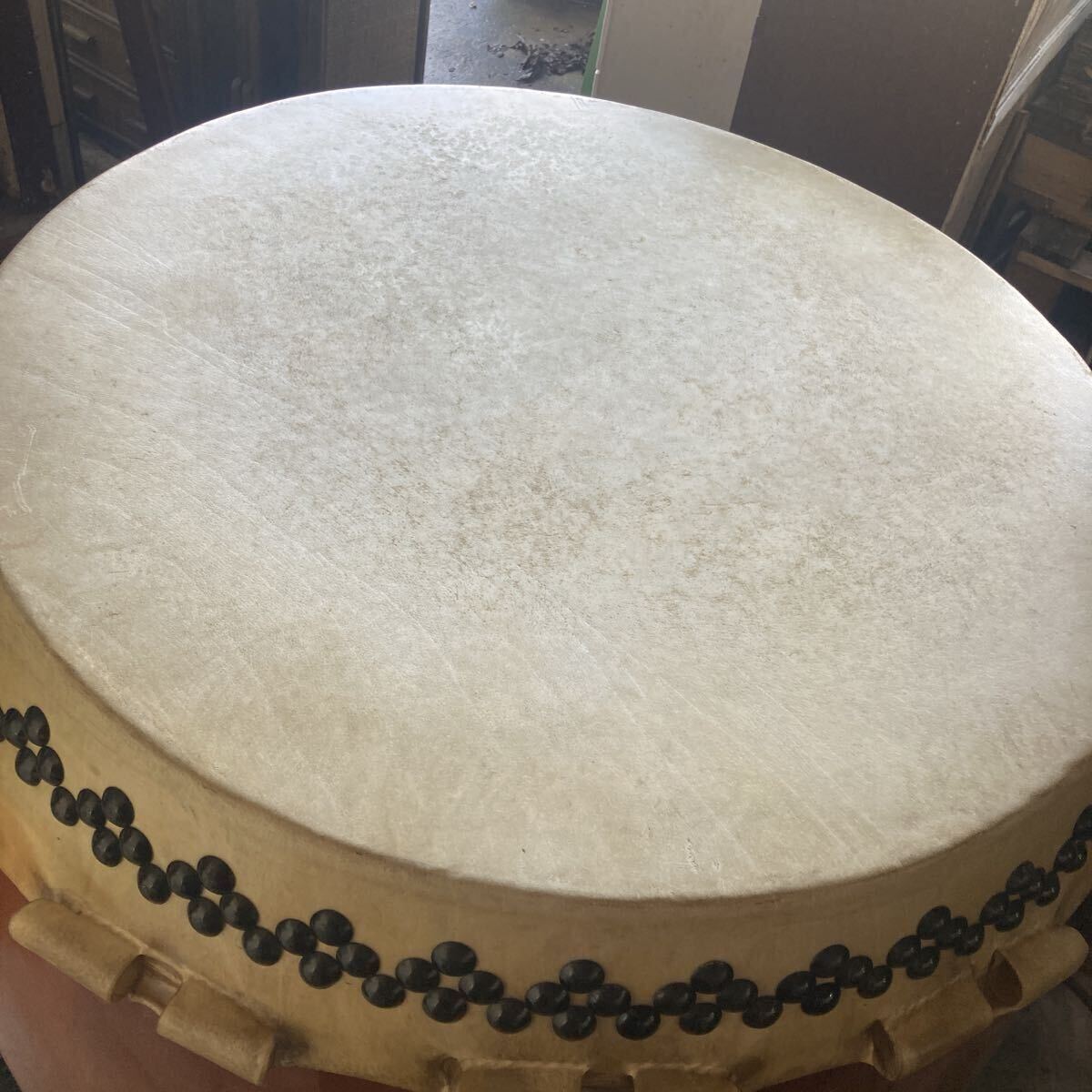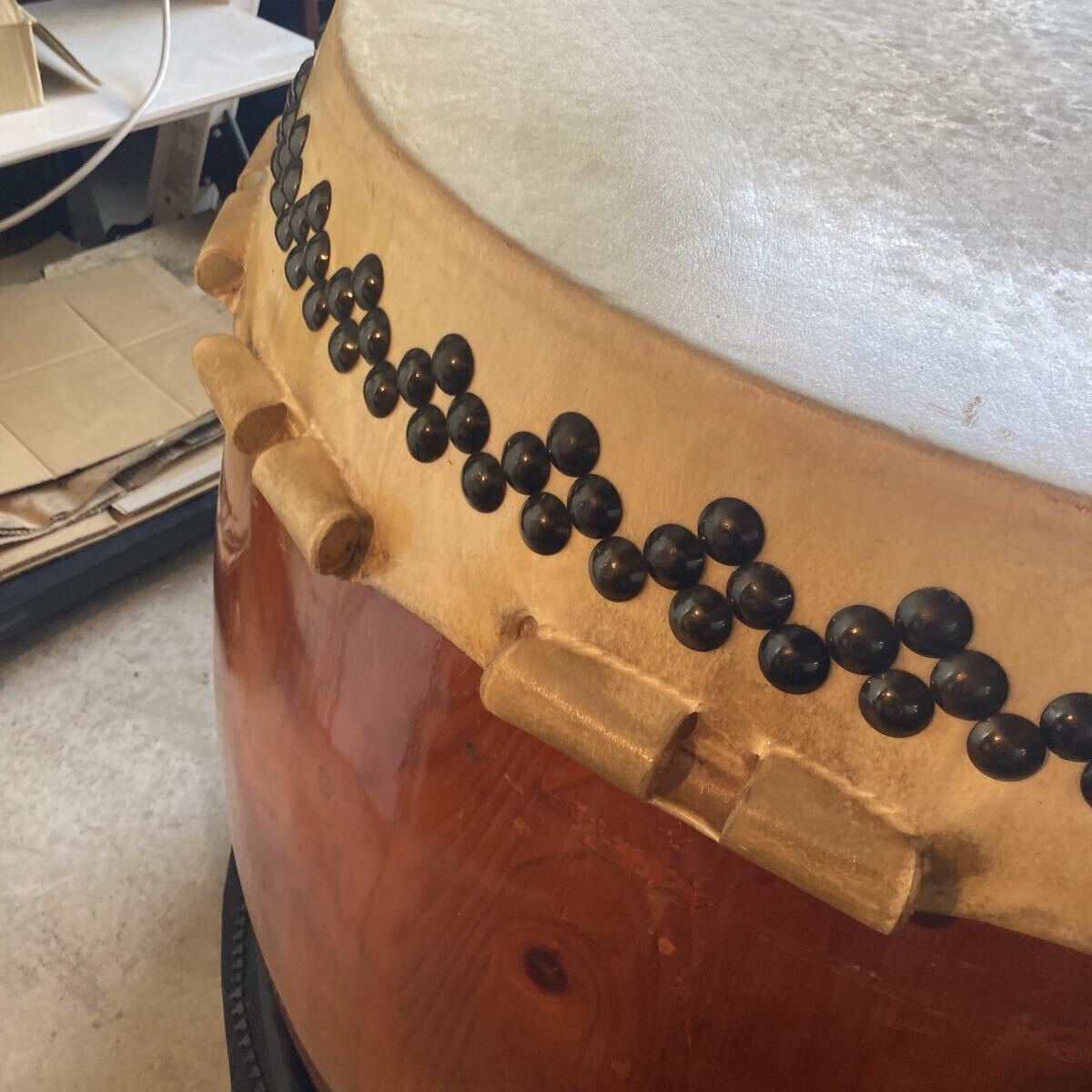 皮(牛皮)・胴(松材)・金具(鉄製)×4
