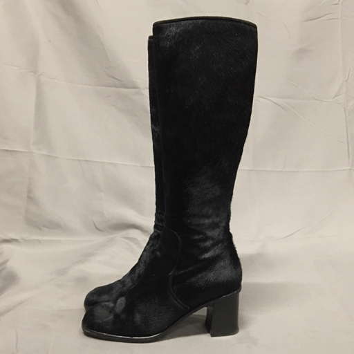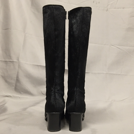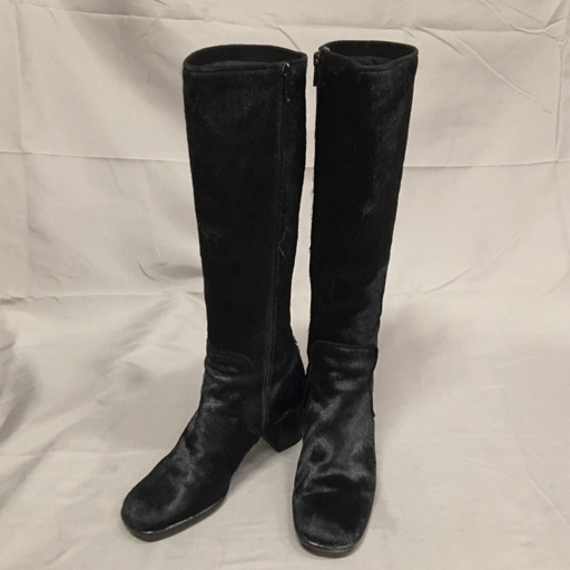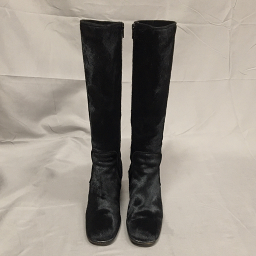 | フェンディ サイズ 35 1/2 ハラコ ロング ブーツ スクエアトゥ レディース ブラック 黒 イタリア製 ブランド靴 FENDI |