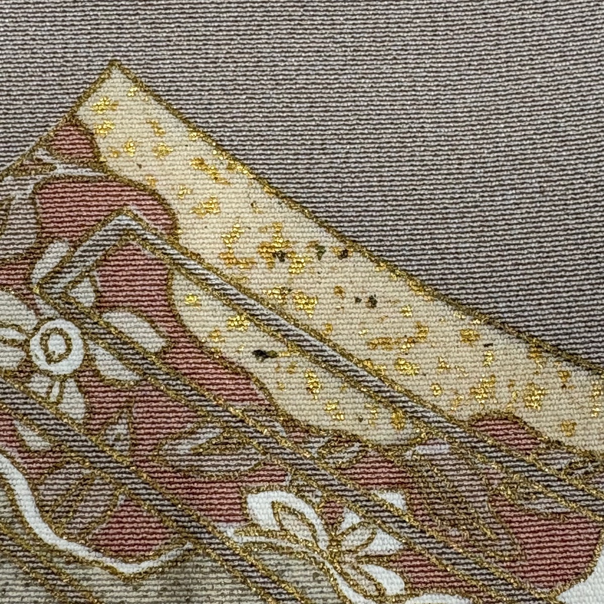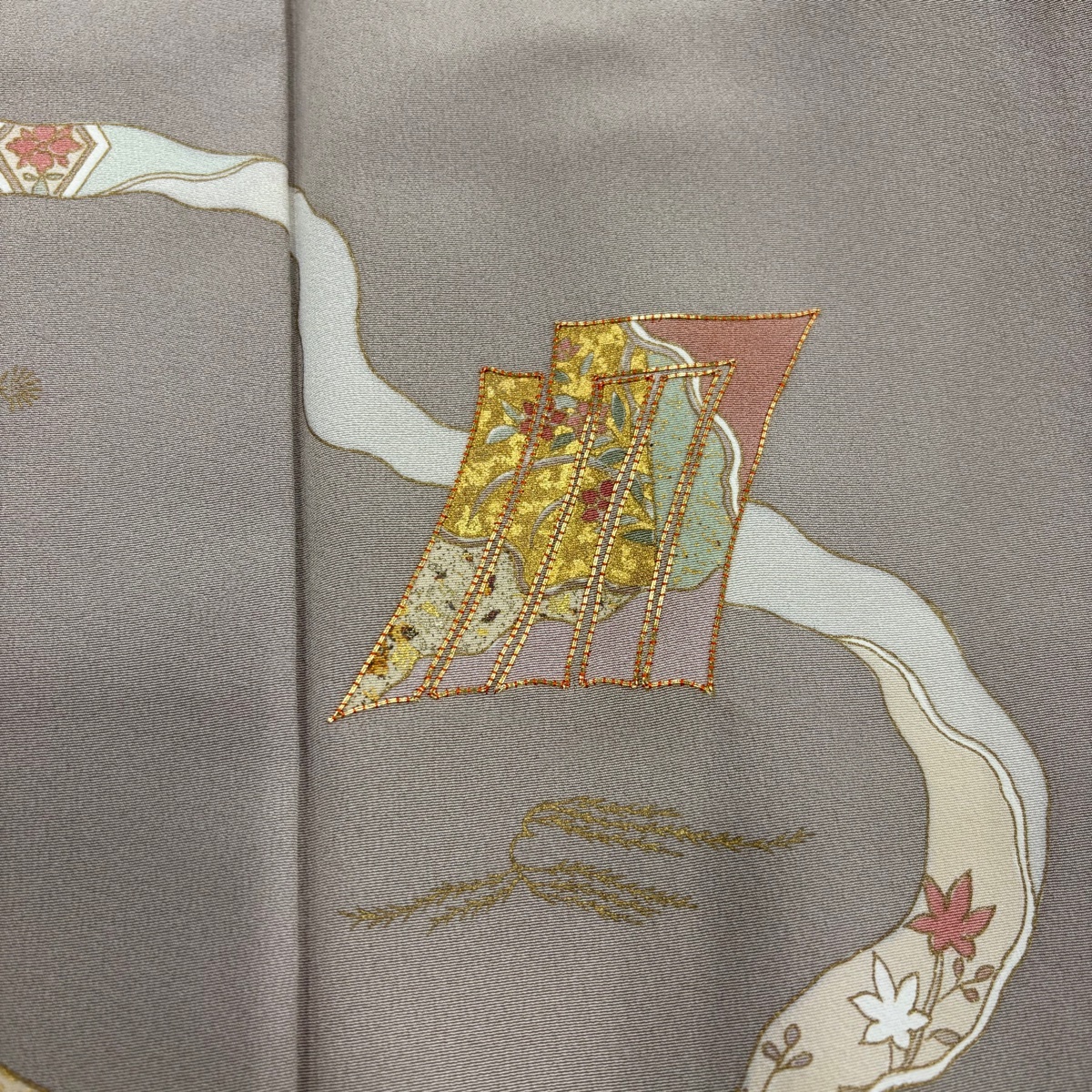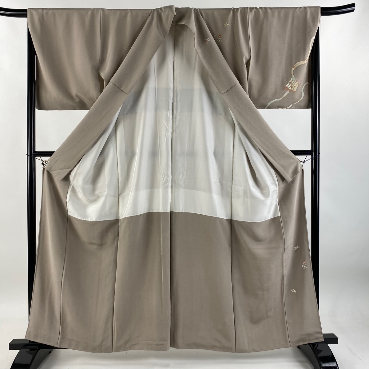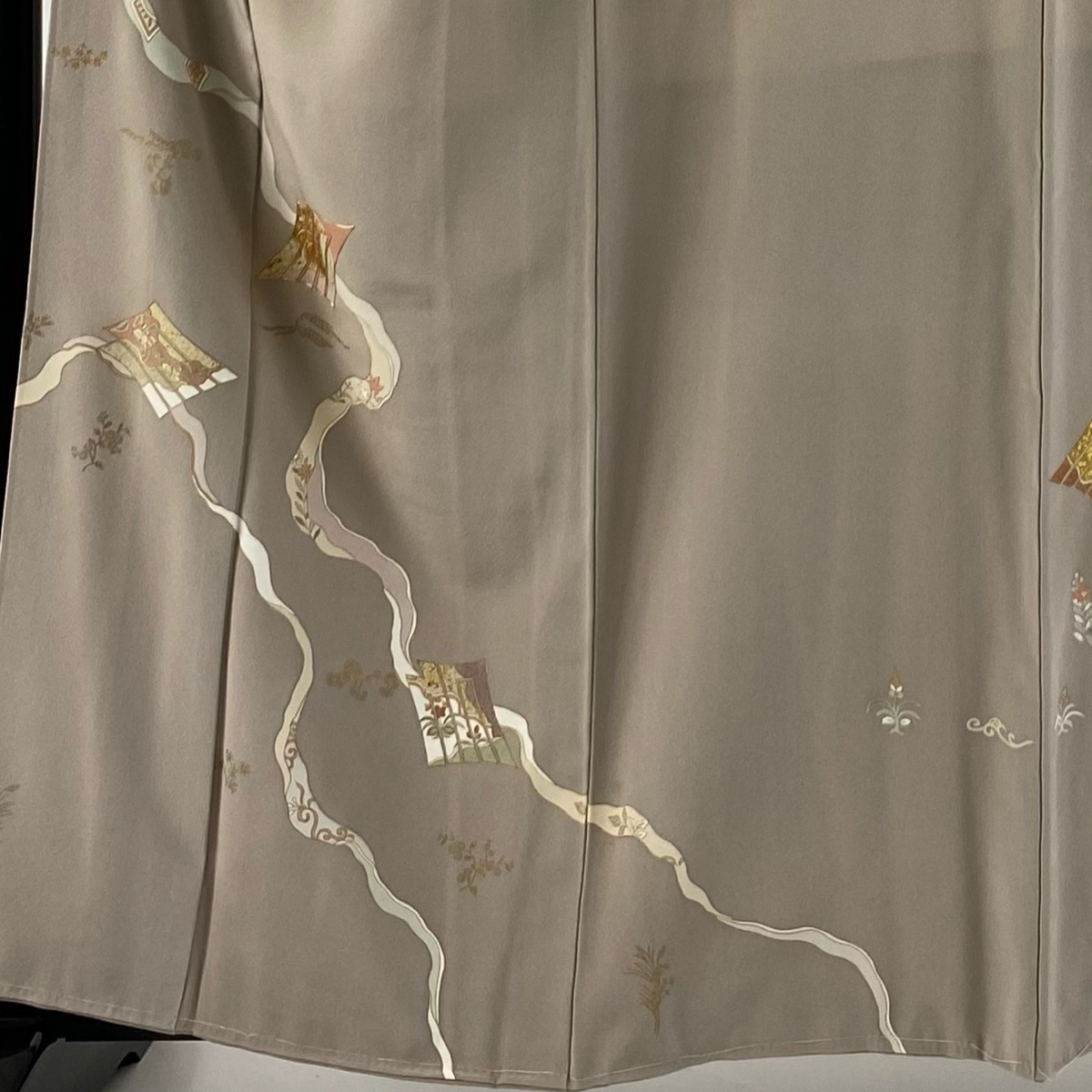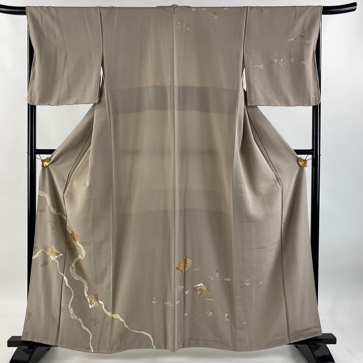 付下げ 秀品 源氏香 草花 金糸 金彩 灰茶 袷 身丈159 裄丈66.5 M 正絹 【中古】 |