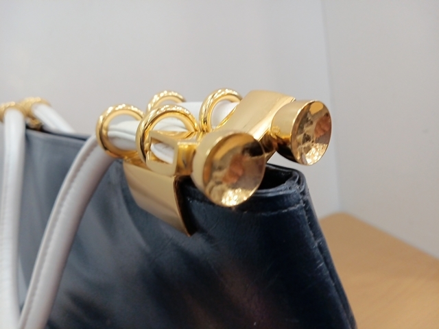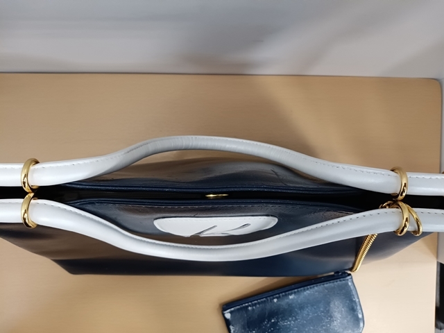 ・Kitamura キタムラ レザーハンドバッグ R-0610 10902 ダークブルー×パールホワイト ・長期使用による型崩れ・レザー部に傷・擦れ 収納内部に汚れ・若干のベタツキ ミニポーチレザー部片面に擦れが見受けられます。 ※画像でもご確認ください。 ・画像にあるものが全てです。 ・サイズ: 約W30×H21×D8cm 持ち手; 約30cm 付属品: ミニポーチ 仕様: マグネットホック開閉式 ポケット: 内側;ファスナー 1 オープン 1 |