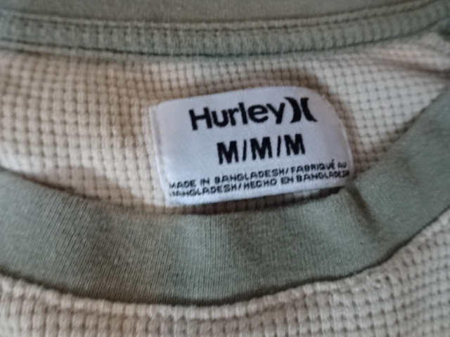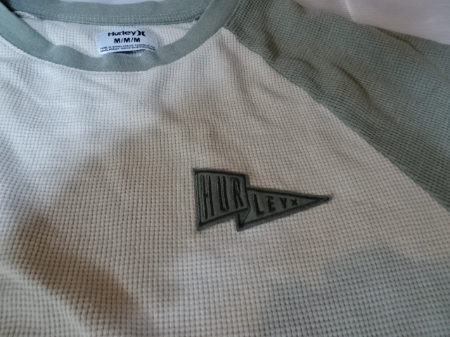 激レア USA購入 人気サーフ系ブランド ハーレー【HURLEY】 三角ロゴワッペン付 サーマル素材 ロングTシャツUS M 中古品