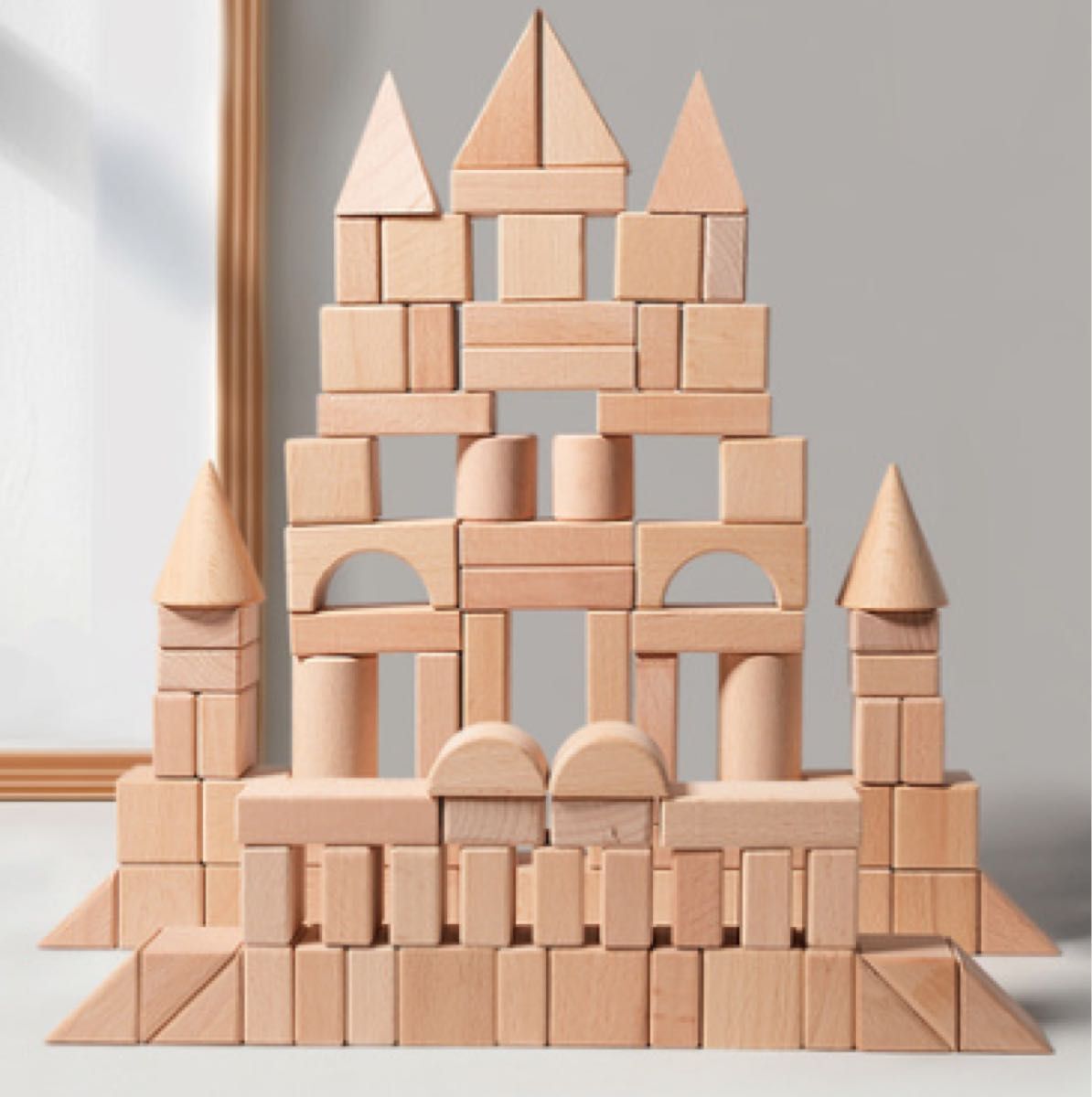 ・さまざまな形やサイズの積み木で自由な発想を刺激
