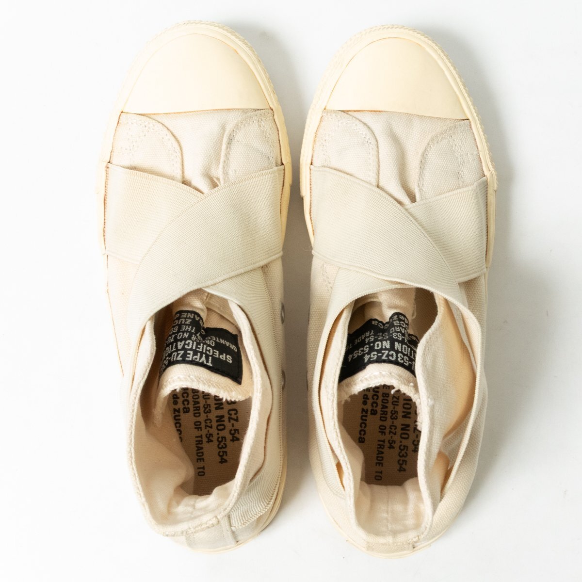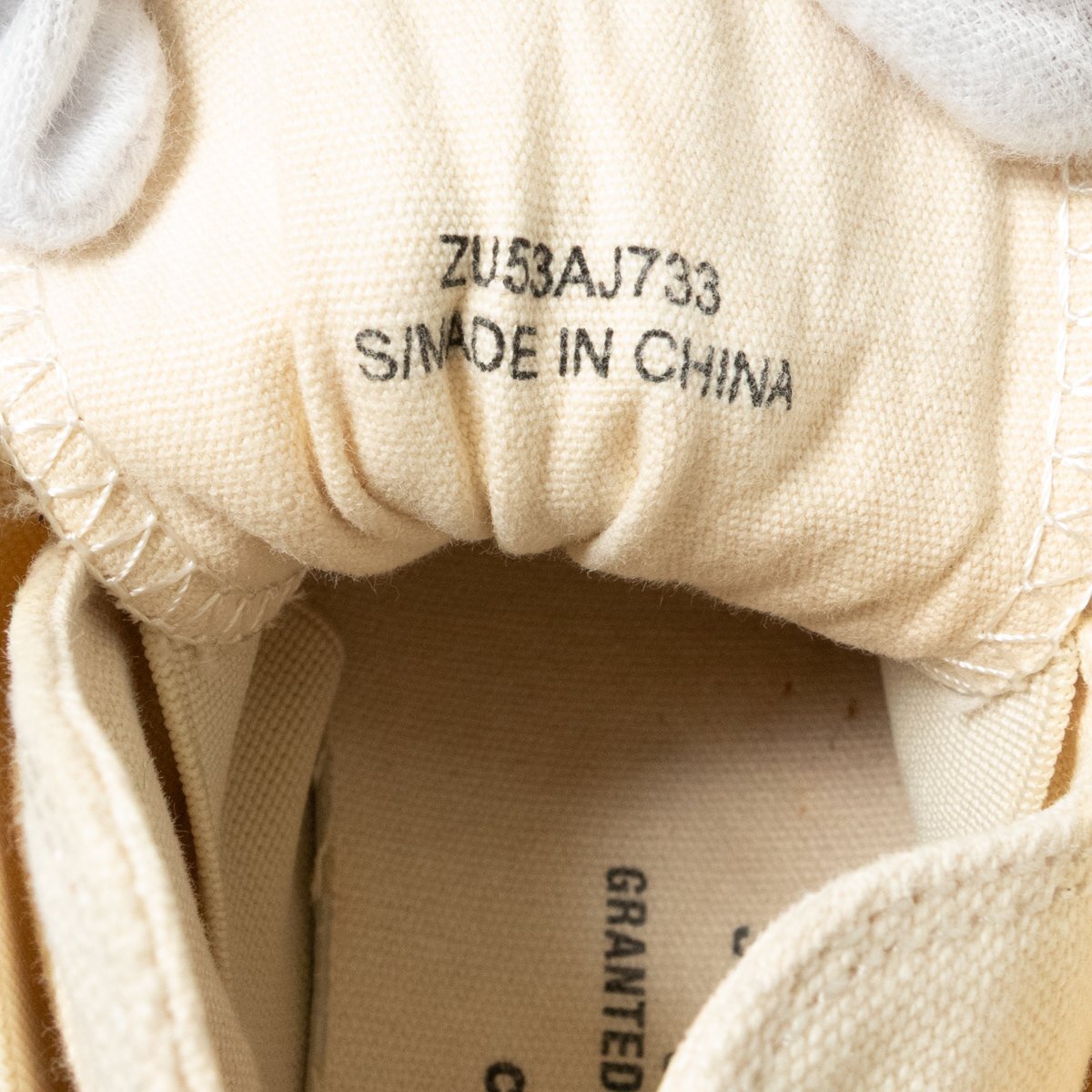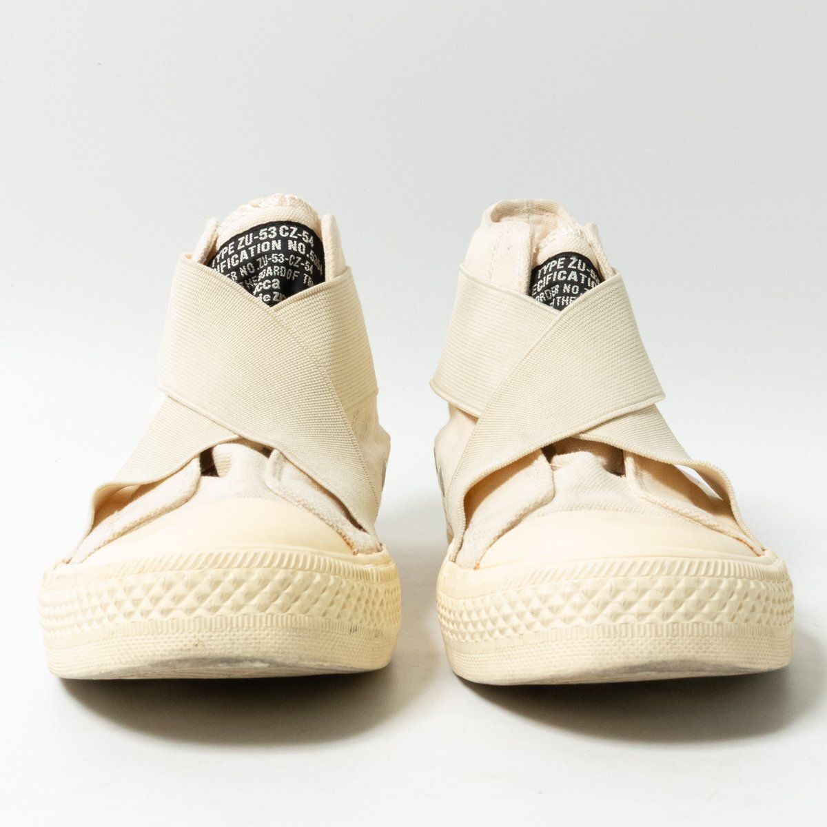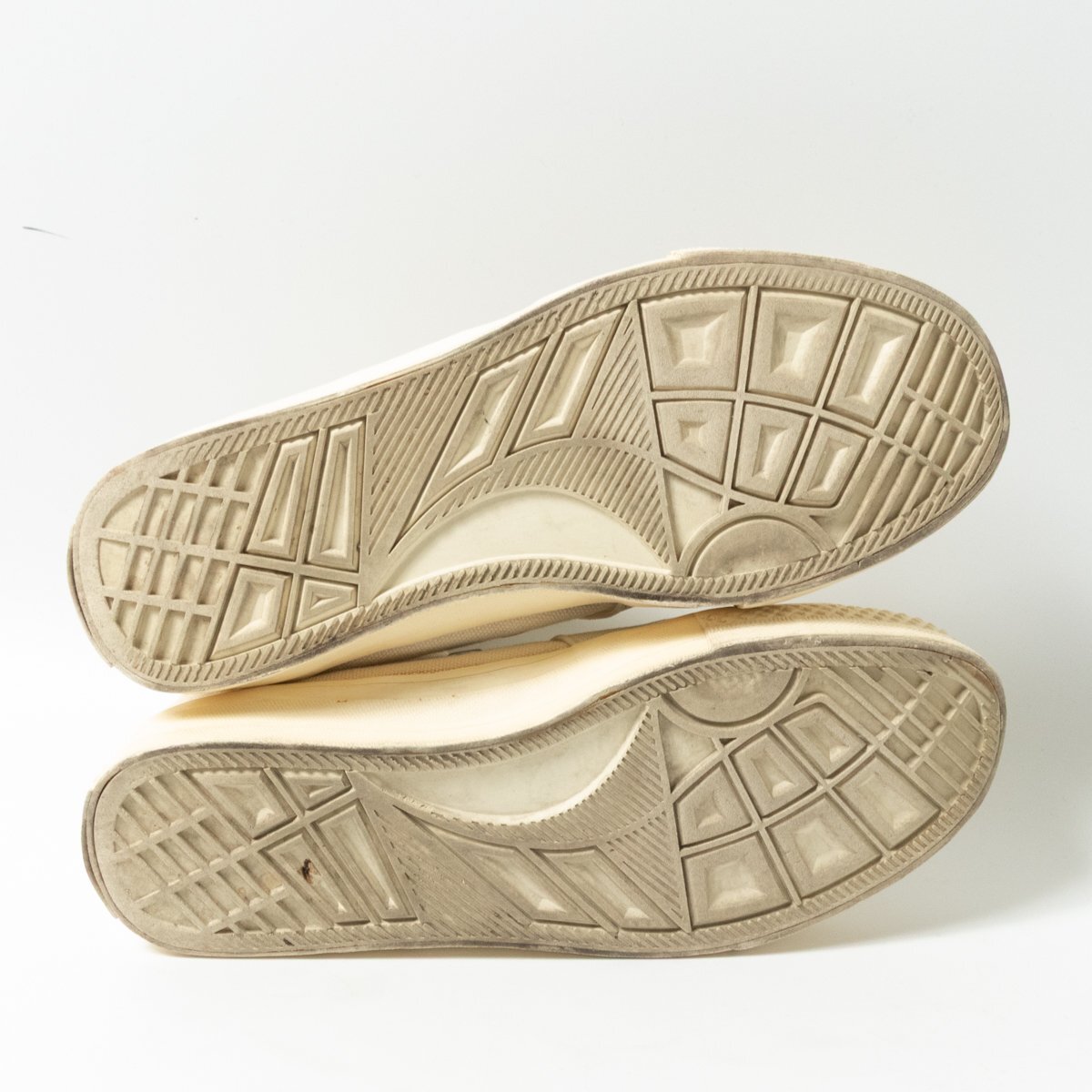 状態 | D:履きジワ、つま先に黄ばみ・スレ傷・薄汚れ、キャンバスにシワ・スレ・変色・色移り・薄汚れ、ゴムにやや伸びと薄汚れ、内側に色移りや薄汚れ、ソールに黄ばみやスレ傷や薄汚れや亀裂、本体とソールの接合部分にはみ出した接着剤の変色、アウトソールにすり減りや汚れがございます。 |