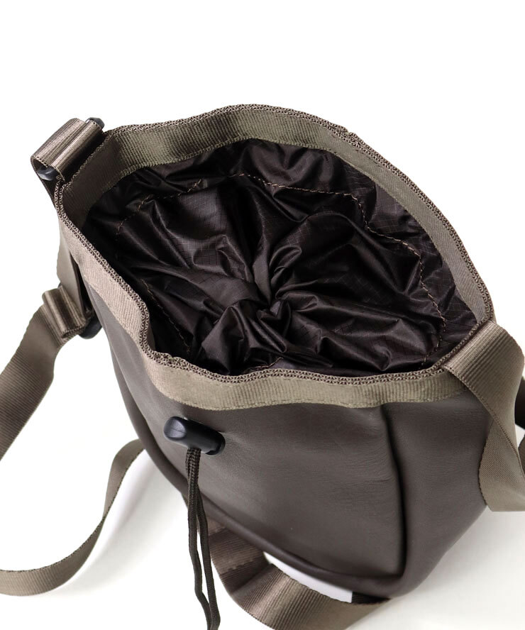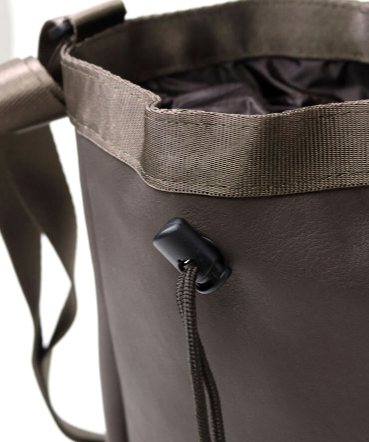 撥水効果のあるスコッチガード加工を施した牛革を使用し、90年代のアウトドアブームで人気を博した“チョークバッグ”をブランド流にアレンジしました。