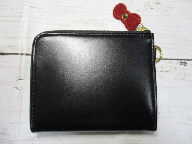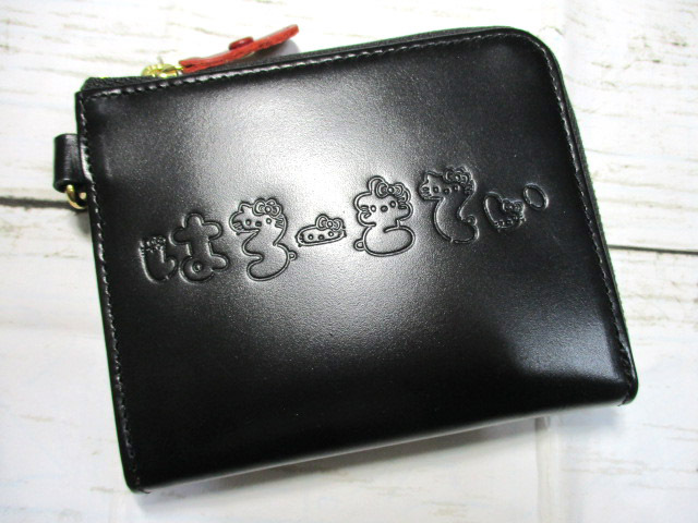 格安 新品 ハローキティ 財布 レディース HELLO KITTY 短財布 L字ラウンド ブランド 本革 「文字デザイン」シリーズ サンリオ公式 BK