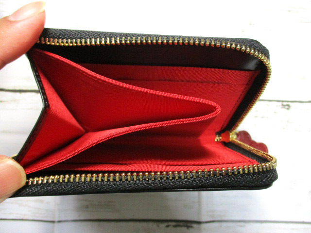 コンパクトサイズのL字ファスナーデザインで、大きく開く本体はカードも取り出し易く