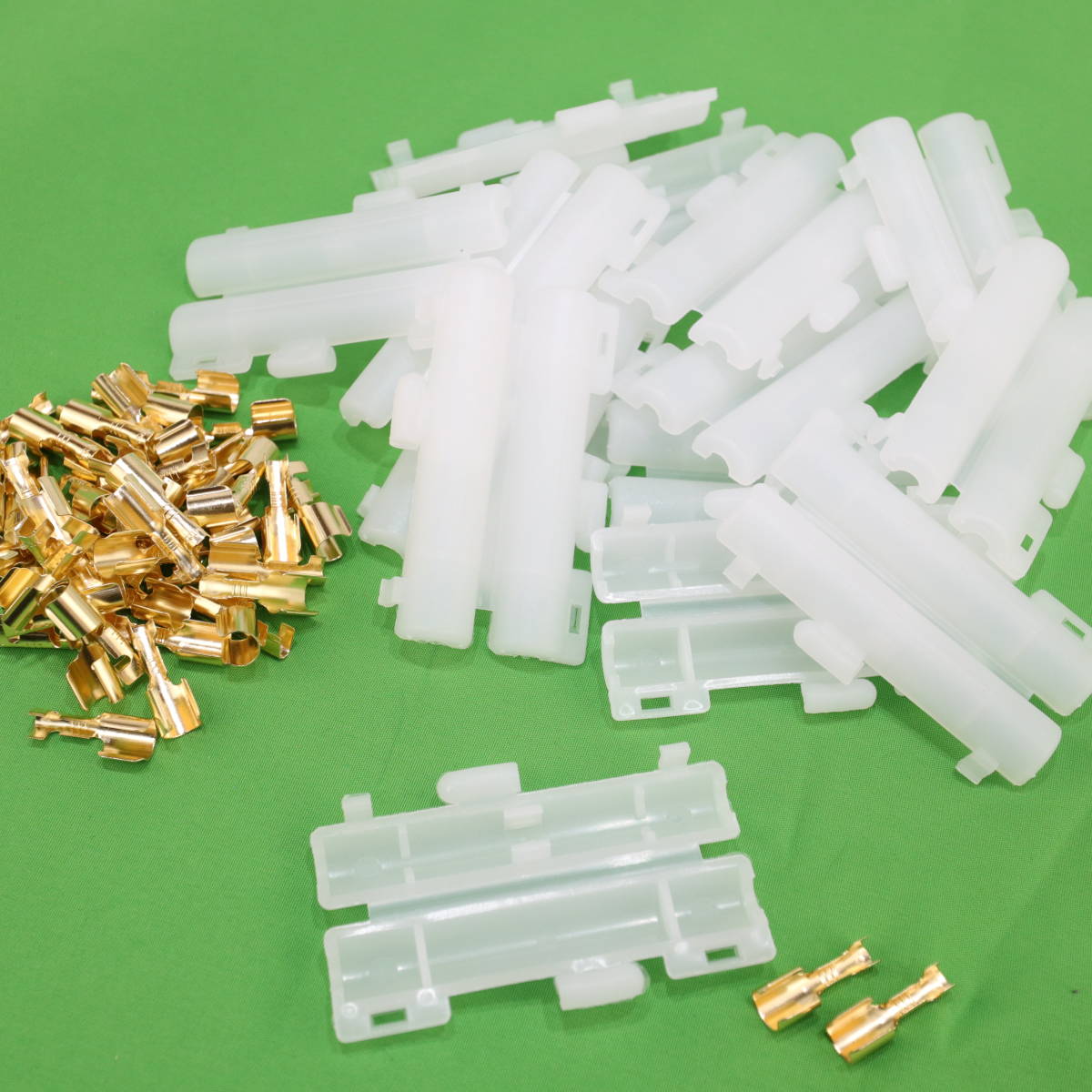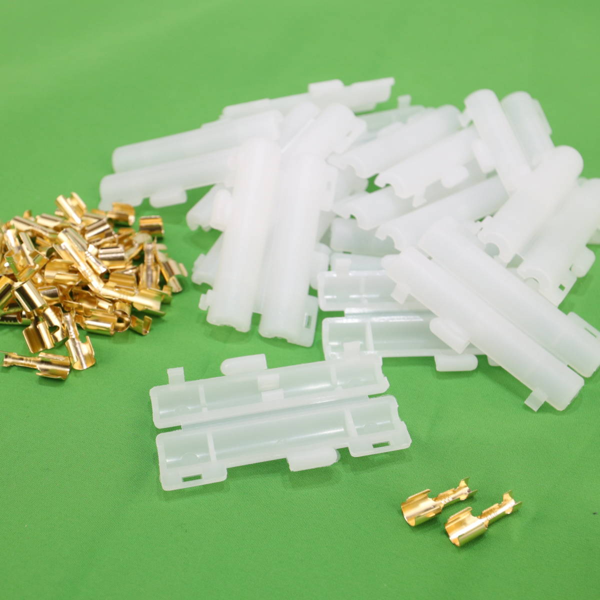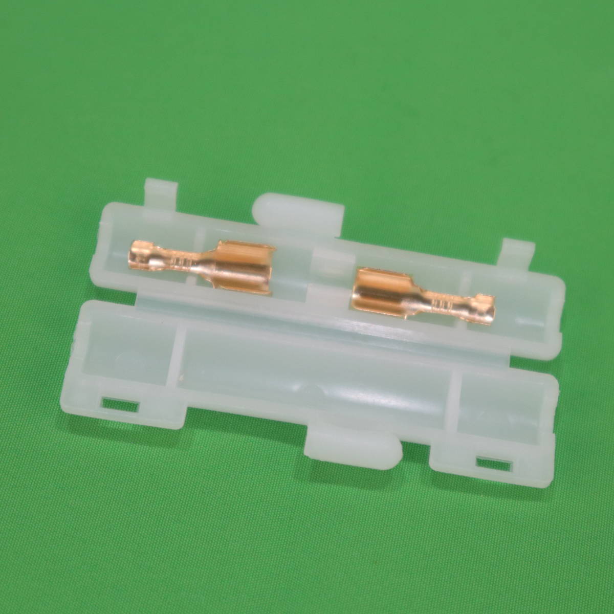 | ガラス管用ヒューズホルダー 10個セット分 セット内容 ガラス管用ヒューズホルダー ×10 ヒューズ用端子 ×20 ※ご利用頂けるヒューズのサイズは標準サイズの30㎜×6.4㎜となります。 ガラス管用ヒューズホルダーを10個分、製作するセットです。 こちらのヒューズ用端子にはケーブルは付いておりませんのでご自身で必要なケーブルの位置にヒューズを取り付けることが出来ます。 電源ケーブルを自作される場合や電装系などで追加回路などを組み込まれる場合等に機器や回路の保護回路に如何でしょうか。 ・他のヒューズホルダーとの問題点比較 ・同形状のクリアタイプもございますがエンジンルーム等、高温になり易い環境で使用した場合、劣化がホワイトタイプと比較しても早く、物理的な破損も多く経験しております。 ・両端にスプリングの入ったヒューズホルダーはケーブルを引っ張ると接触不良となる割合が高いです。 また、ヒューズとの接触が一点のみになってしまうことにより端子の腐食が発生し電圧降下を起こします。 ・同ヒューズホルダーでは既にケーブルまで付いた物もありますがケーブル延長等行った場合、接続箇所が増えることにより接触不良等の不安個所を意識的に増やすことになります。 これら問題点を踏まえ、当方ではこヒューズ自体も入手し易いタイプのヒューズホルダーを採用しております。 電子部品など製作用パーツの商品出品はこちらにて纏めてご確認することができます。 電子部品・アンテナ接栓等DIYパーツ |