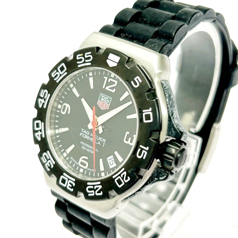 【1円スタート】TAG HEUER タグホイヤー WAC1210 フォーミュラ1 SS×ラバー ブラック文字盤 クオーツ ボーイズ腕時計 ジャンク E33-2