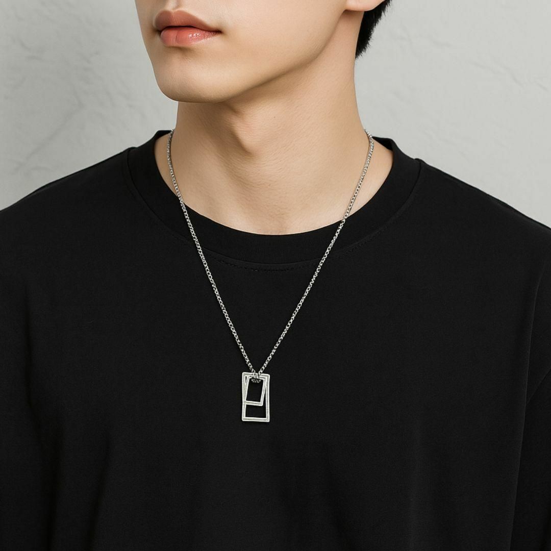 #メンズネックレス #韓国ファッション #シルバーアクセサリー #モード系 #スクエアネックレス #N.plusセレクト商品