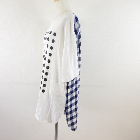 ハク スーパーハッカ H.A.K チュニック 七分袖 プリント チェック 白 *T277 レディース