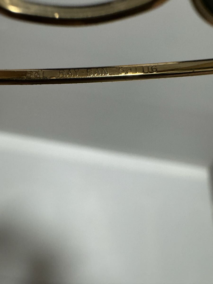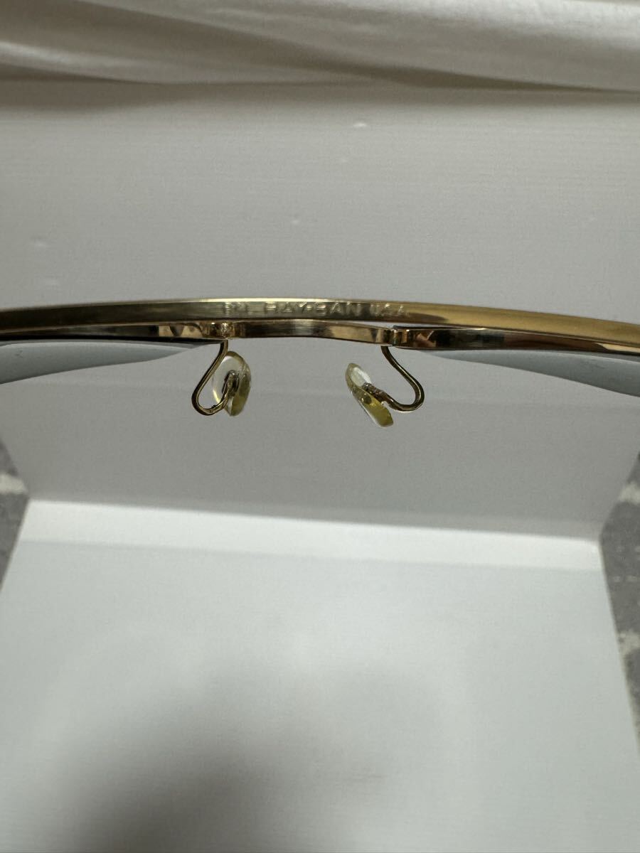 ブリッジに「B&L RAY-BAN U.S.A. 」「B&L RAY BAN 52□16」の刻印があります。レンズにロゴ、BLの砂打ちがあります。