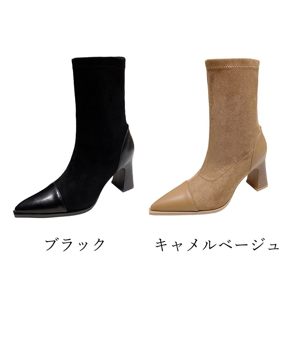 通勤OL ブーツ チャンキーヒール靴 韓国おしゃれくつ