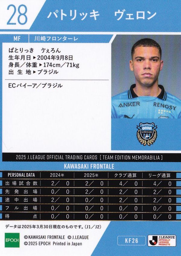 EPOCH 2025 TE 川崎フロンターレ KF26 パトリッキヴェロン パラレル版