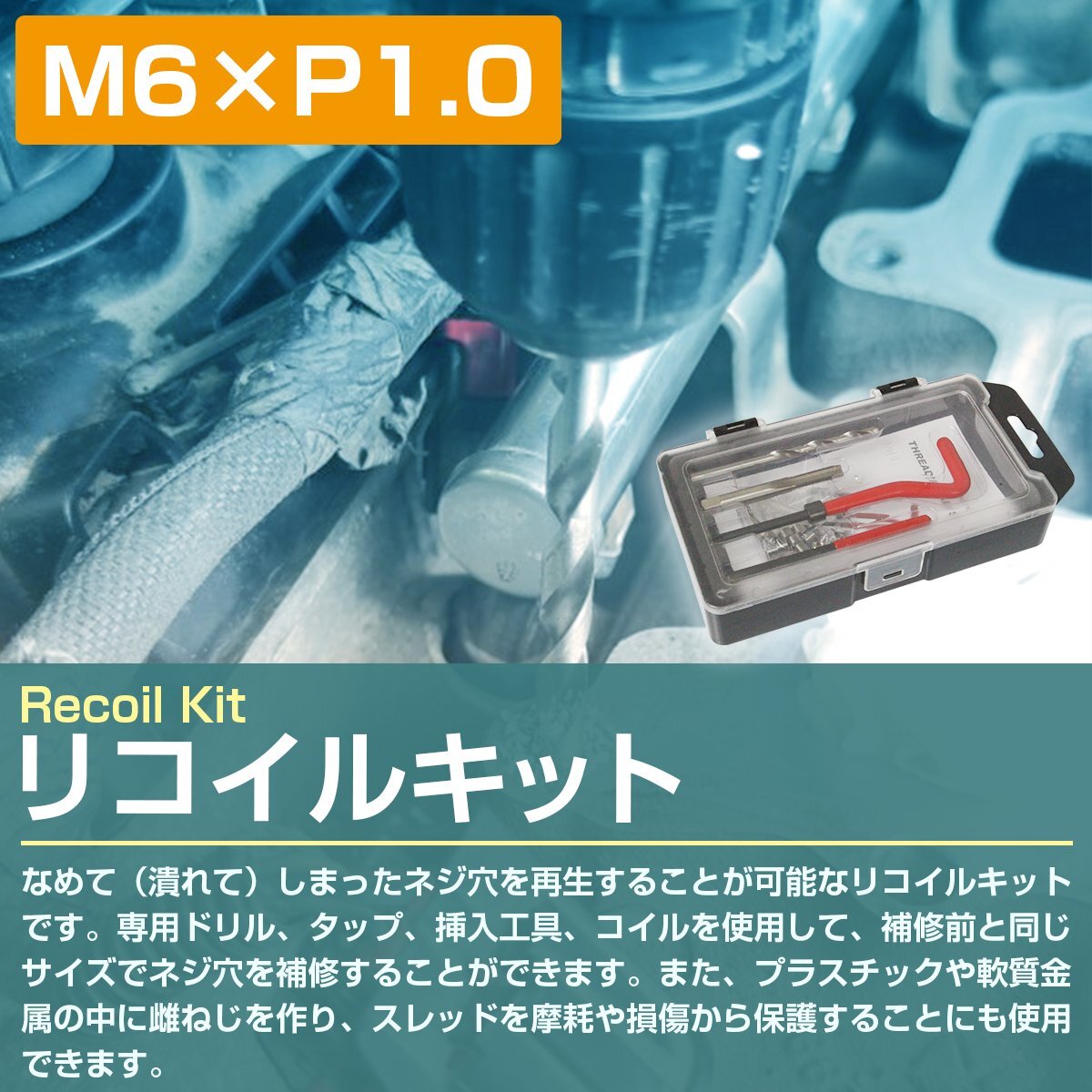 『M6×P1.0』リコイルキット ネジ 山 修正 ドリル付き めねじ 再生 ねじ 穴 修復 補強 耐久性向上 雌ネジ 補修 工具 セット