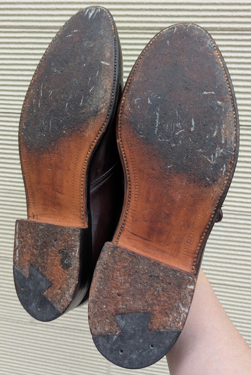 ・インソール除菌後、乳化性クリーム、油性ワックスを用いケア&ハイシャイン済。アウトソールも専用のクリームでケア済です。