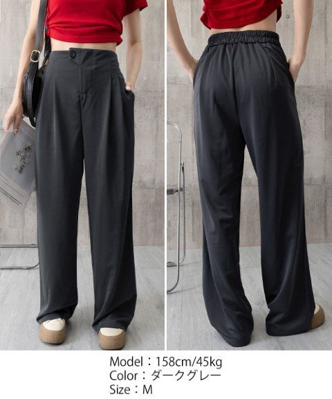 後ろウエストはゴム仕様で、リラクシーな着用感とすっきりとしたシルエットに仕上げてくれます。