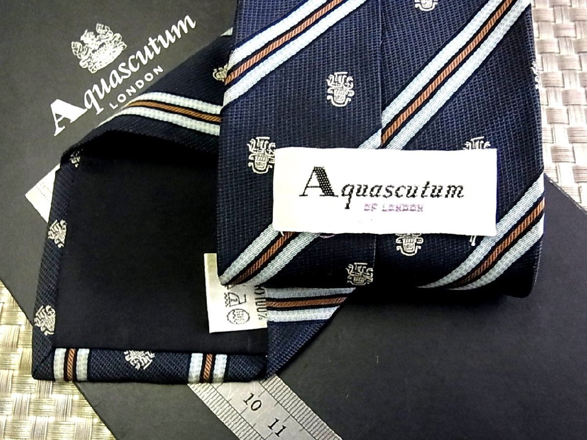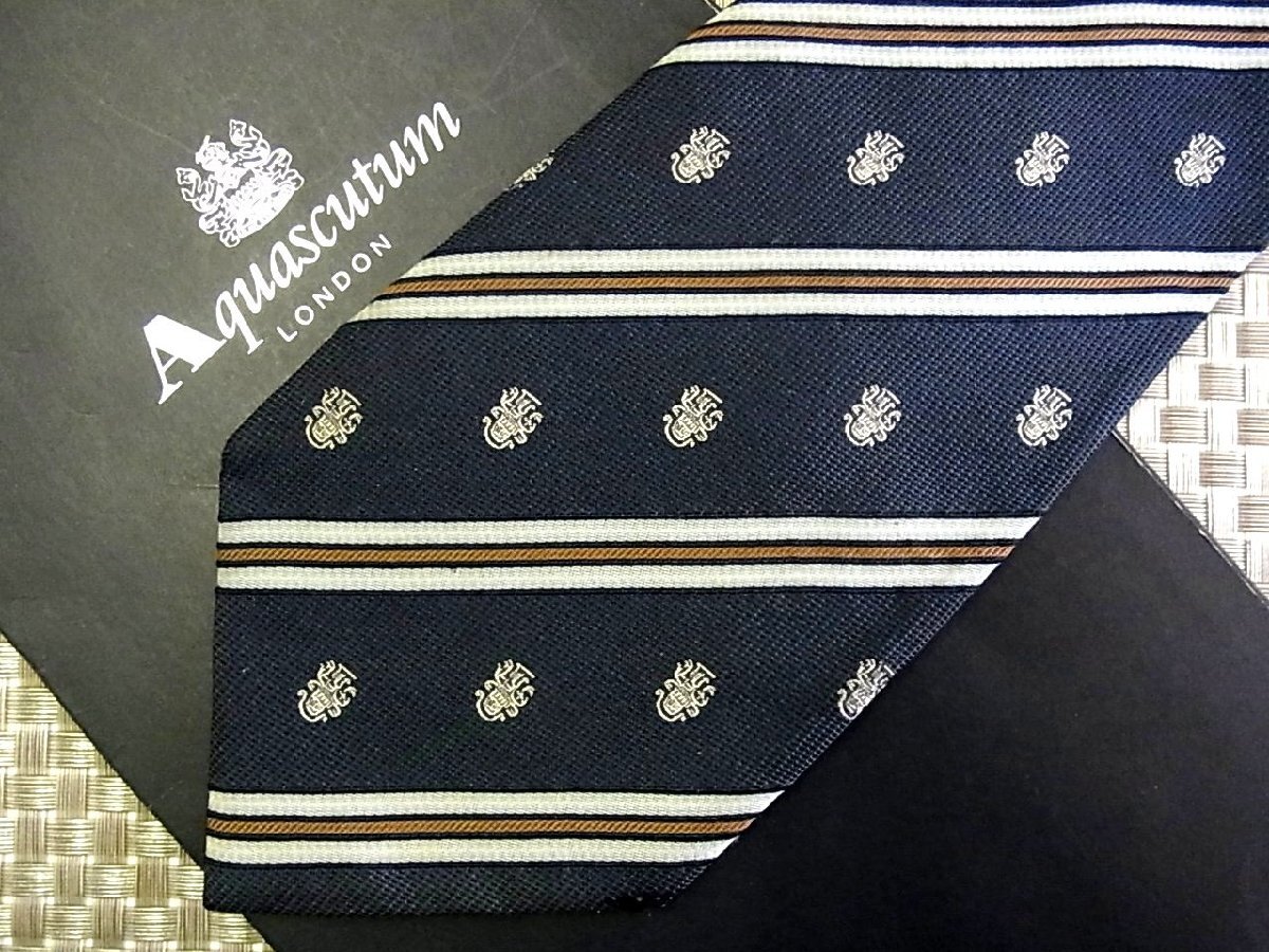 【在庫処分セール】●特売●FK9849W●アクアスキュータム【 刺繍 エンブレム 紋章 ストライプ 柄】ネクタイ●
