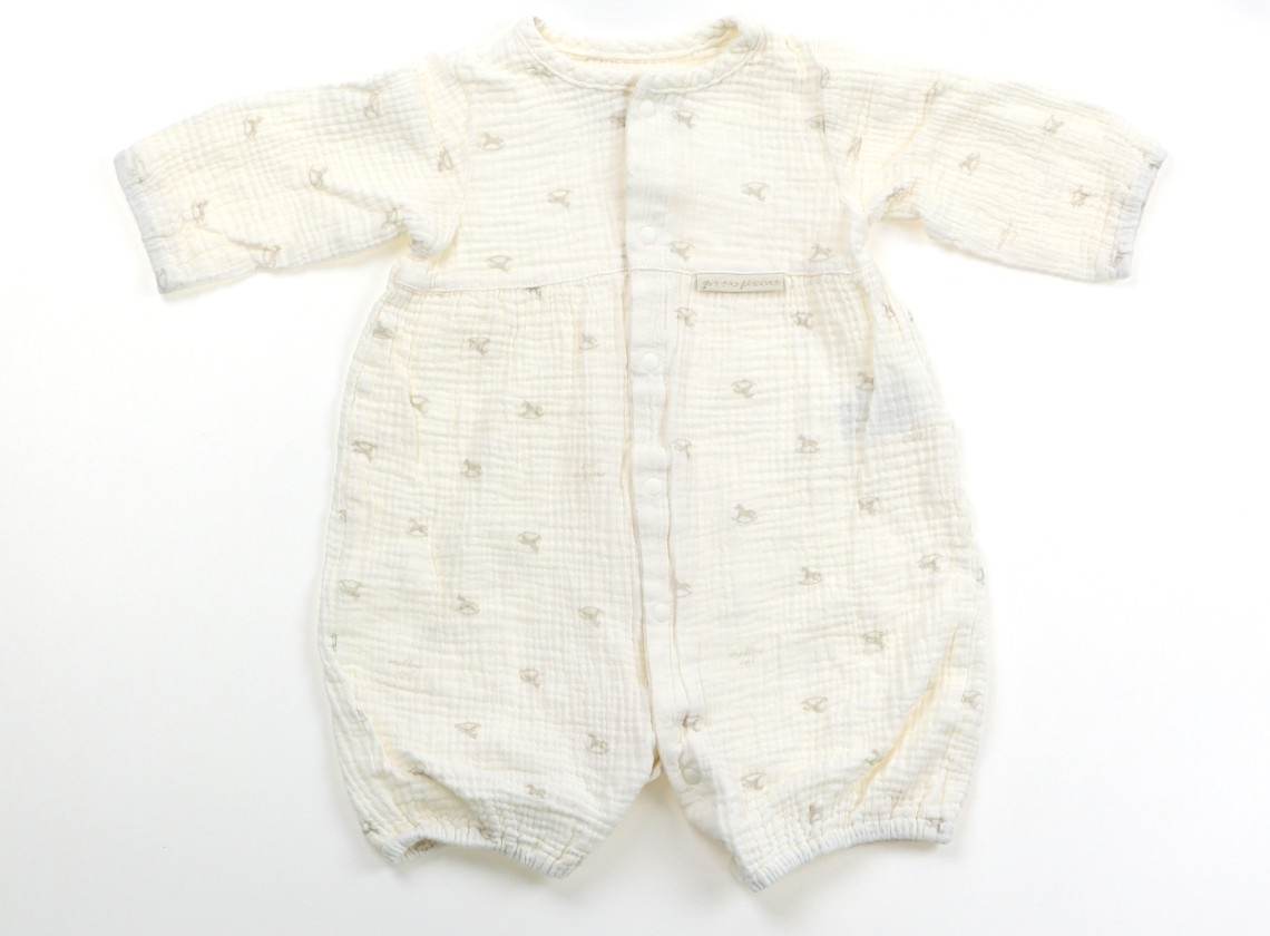 実際のサイズ表記は50-70です。サッカー素材。やや透け感のある仕立てです。若干毛羽立ちがありますが、まだまだ活躍してくれそうです。