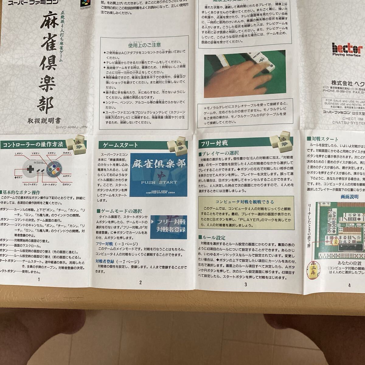 スーパーファミコンの麻雀倶楽部の取扱説明書になります。本体はございません。