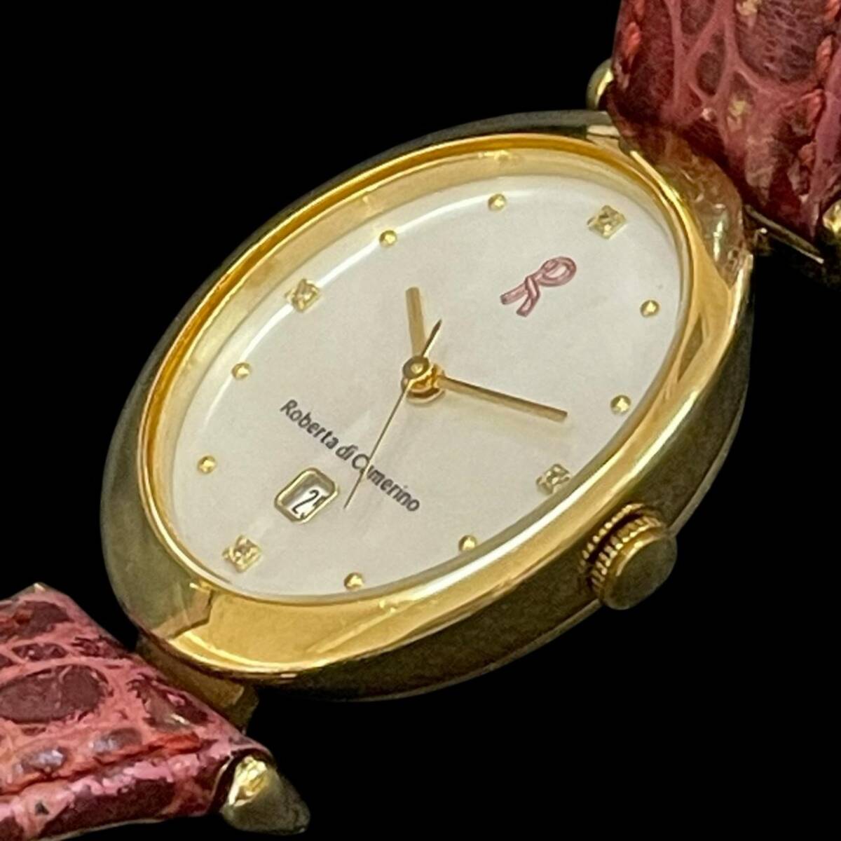| ☆ロベルタディカメリーノ RC.9828 レディース腕時計 クォーツ シェル文字盤 4P デイト 革ベルト 稼働品 |