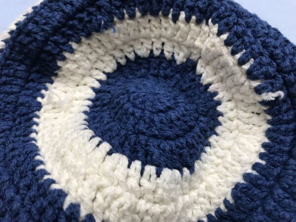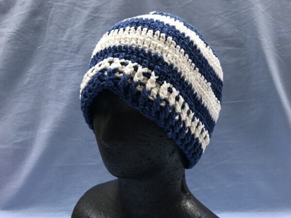 古着小物 レトロ オールド ボーダー バイカラー ニットキャップ ビーニー 帽子 メンズ 青/白 です。