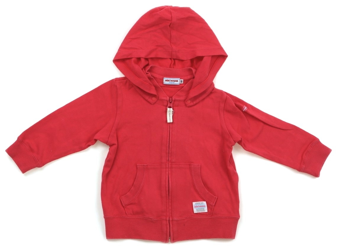 コットン素材。フードの取り外しが可能です。全体に色あせ・毛羽立ちがあります。