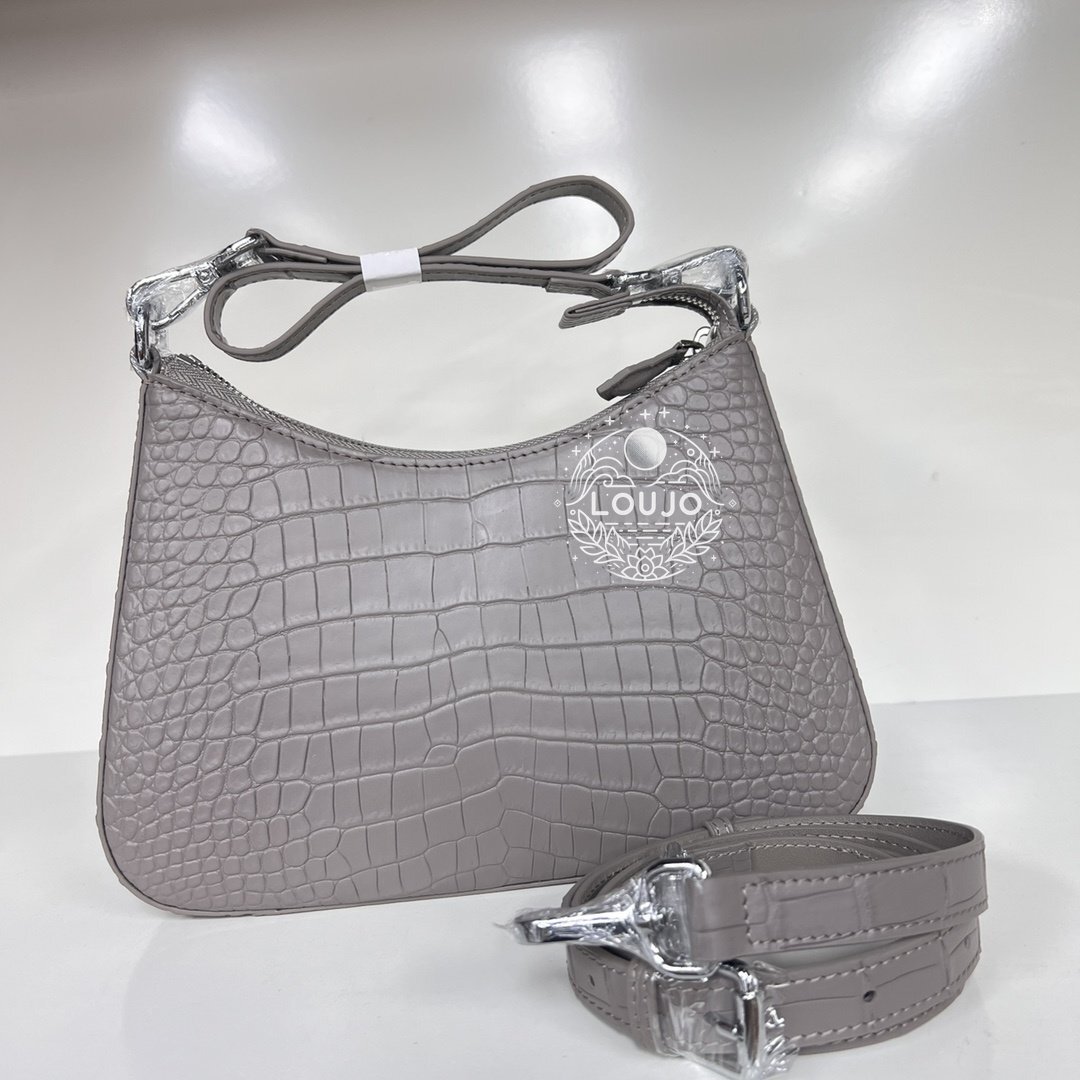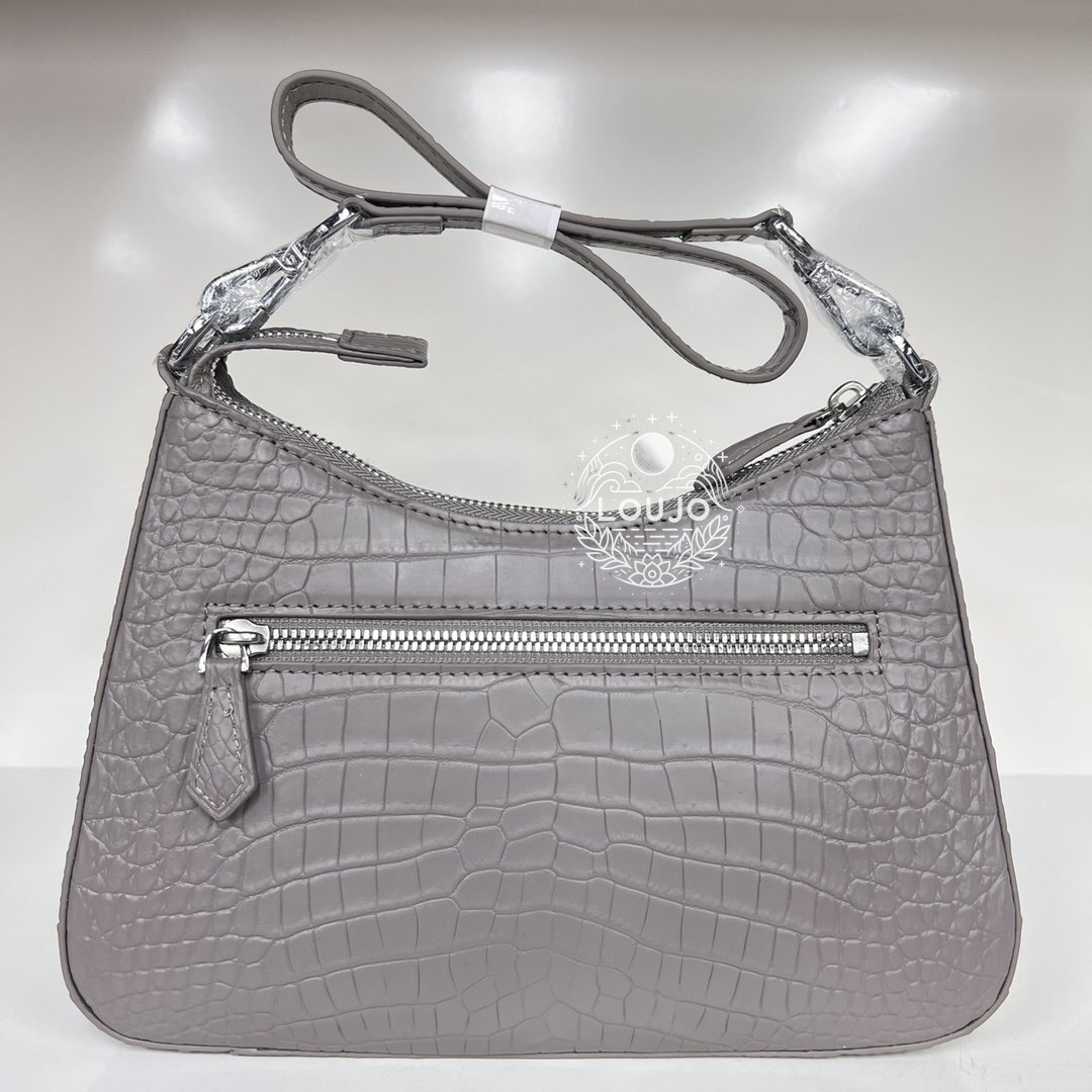 クロコダイルレザー 鰐革 本物 2WAYショルダーバッグ 肩掛け 金運アップ マット加工 グレー