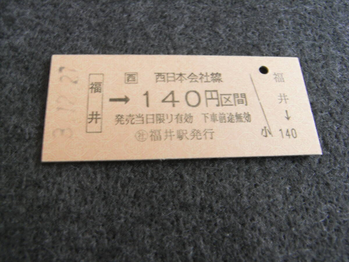 北陸本線 福井→西日本会社線140円区間 平成3年12月27日 社 福井駅発行 JR西日本