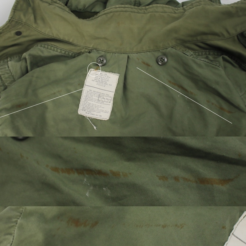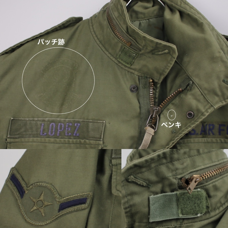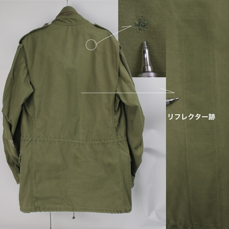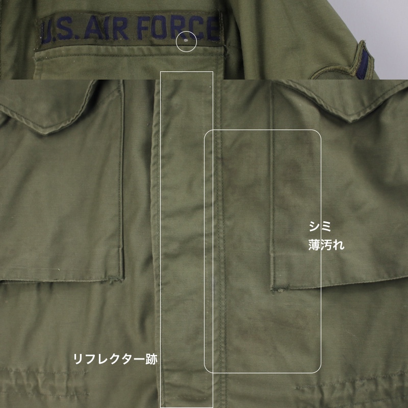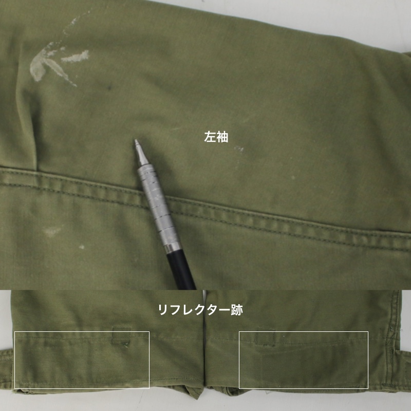 前立て胸からお腹にかけて、背中中央、袖口にリフレクター(反射)テープを外した縫い跡や、色の差があります。