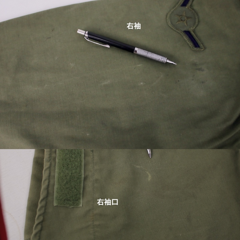 右袖上腕階級章から下、袖口、黒いシミ、白いシミ