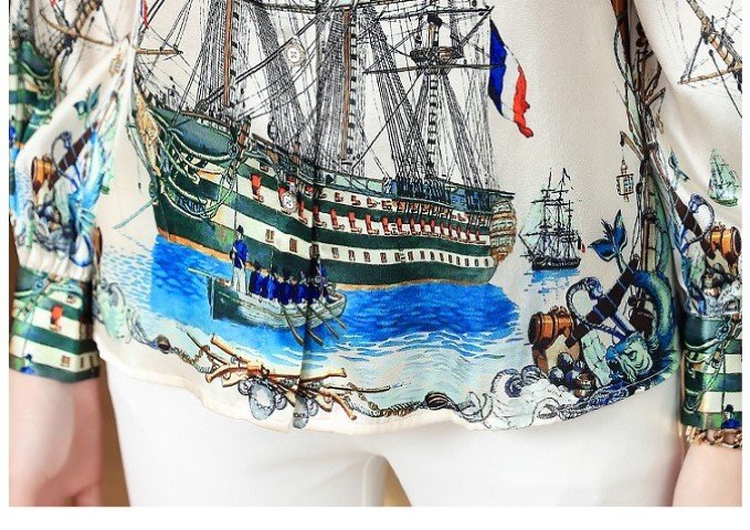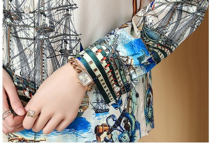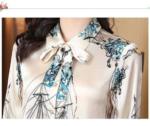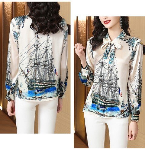 トップス ブラウス 長袖 プリント柄 オフィスカジュアル 仕事 通勤 OL きれいめ 上品 レディース L ベージュ