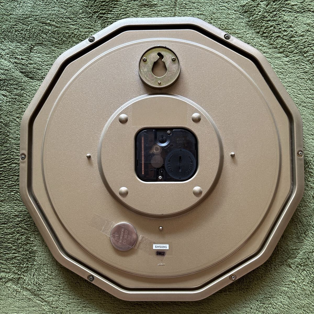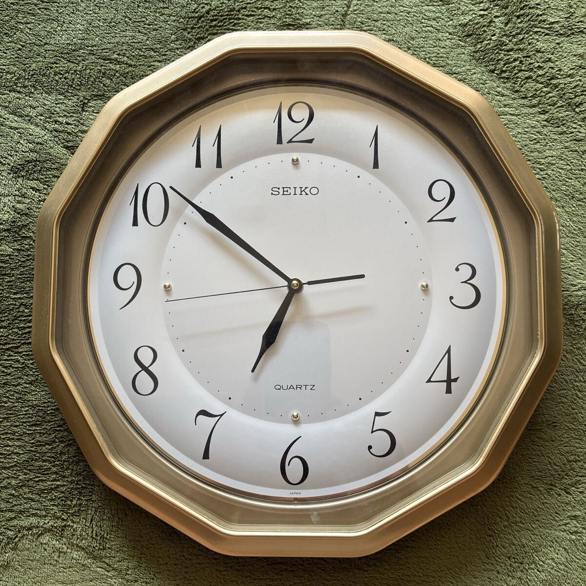 SEIKO製の八角形クォーツ掛時計、ホワイトとゴールドのデザイン。