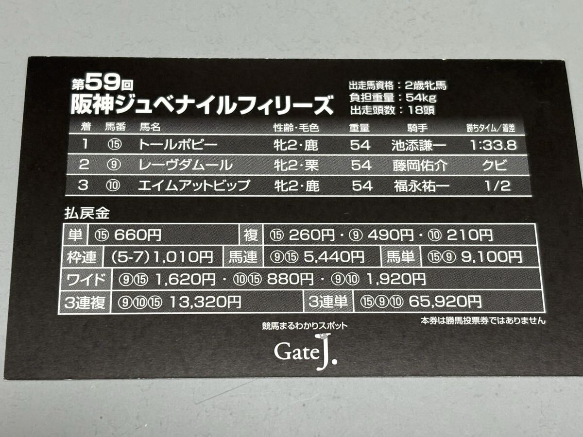 JRA G1カード トールポピー 阪神ジュベナイルフィリーズ GateJ.発行 新品非売品のものです。