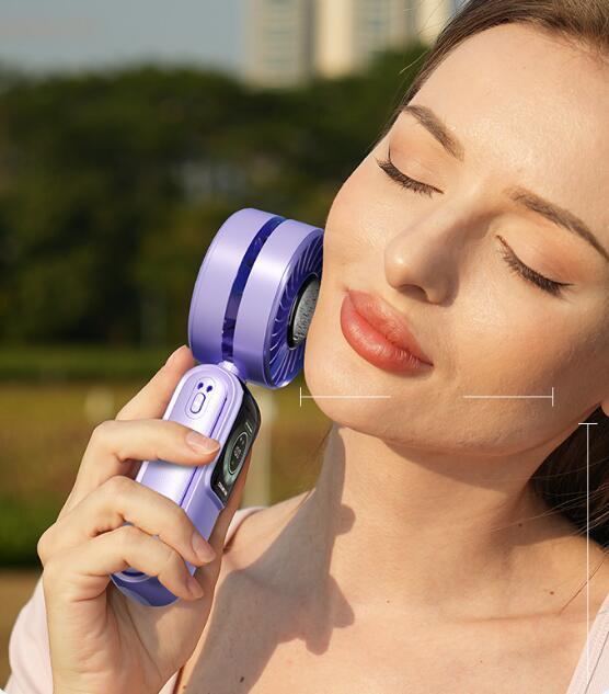 新入荷扇風機冷風機ハンディフン冷却プレート付き手持ち扇風機 首掛け強力瞬間冷却 USB小型5段階風量角度調整 携帯扇風機 熱中症対策ブルー