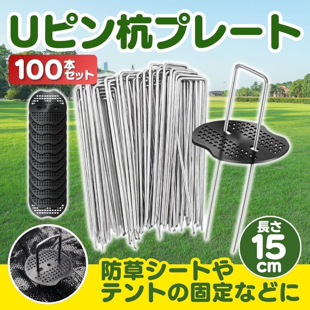 ◆◇防草シートや人工芝の施工に欠かせないUピン杭と黒丸スペーサーの100本セット◇◆