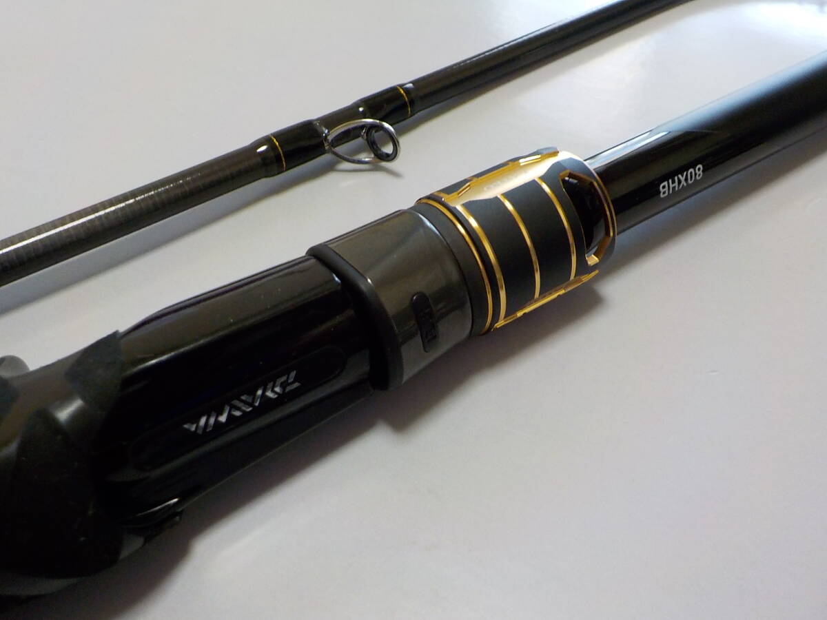 *持ち重りを軽減させる為にエンドに「fhji工業ウエイトバランサー」加工装着してあります。また、操作性向上のためラバーチューブ巻いてあります。ブランクスの傷、スレッドクラック、ガイド錆等はありません。