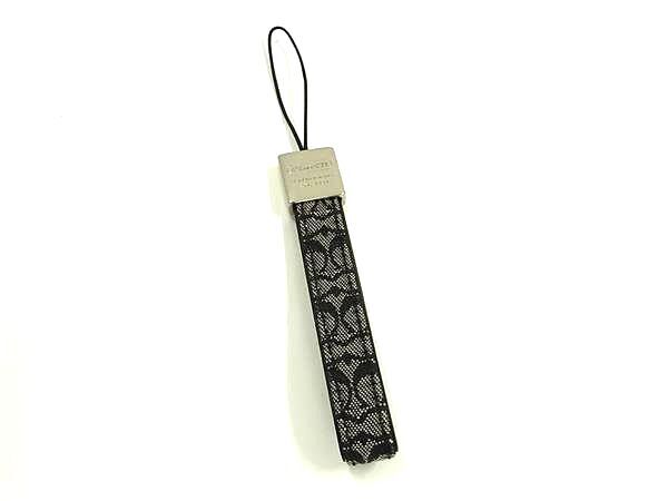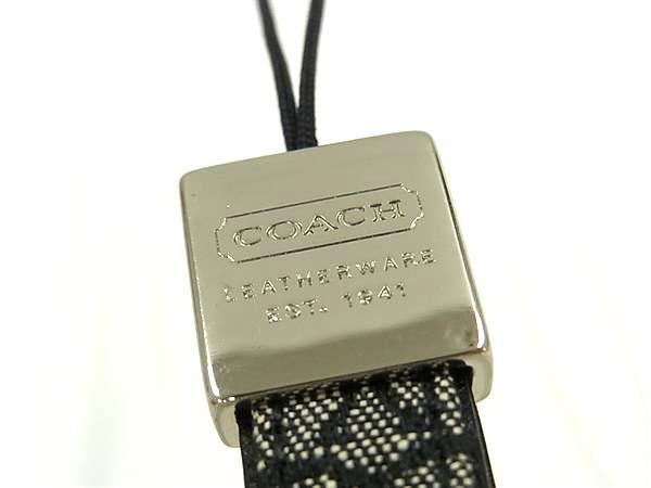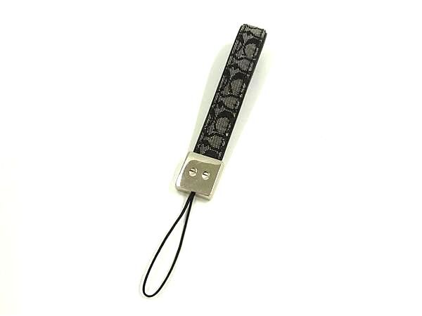 ■美品■ COACH コーチ シグネチャー キャンバス×レザー 携帯ストラップ キーホルダー チャーム レディース ブラック系 DJ2268
