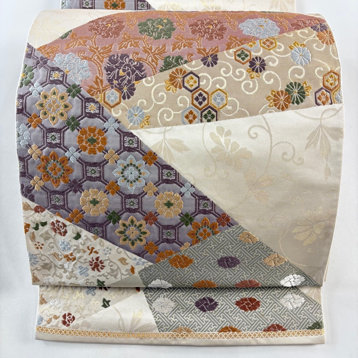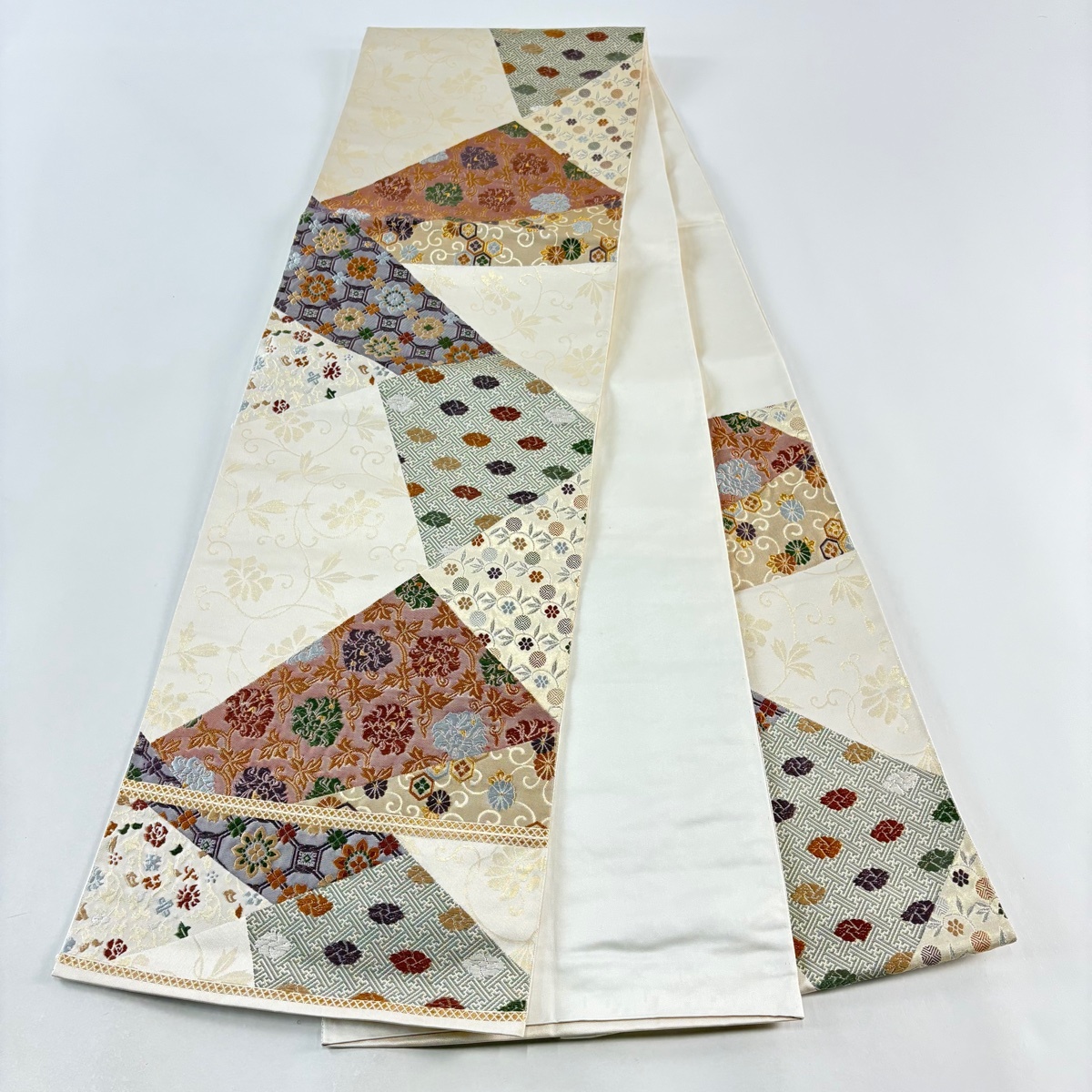 | 袋帯 秀品 関西仕立て 名物裂 唐織 箔 クリーム 六通 正絹 【中古】 |