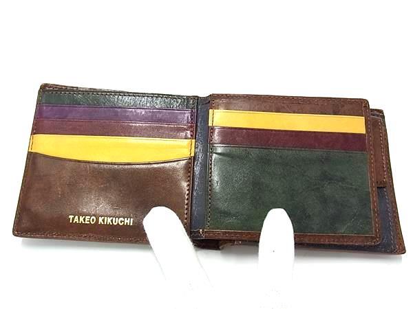 TAKEO KIKUCHI タケオキクチ レザー 二つ折り 財布 ウォレット 札入れ 小銭入れ カード入れ メンズ レディース ブラウン系 DJ2739