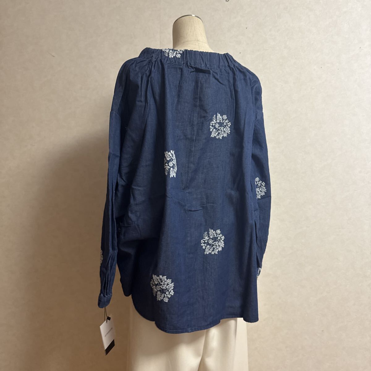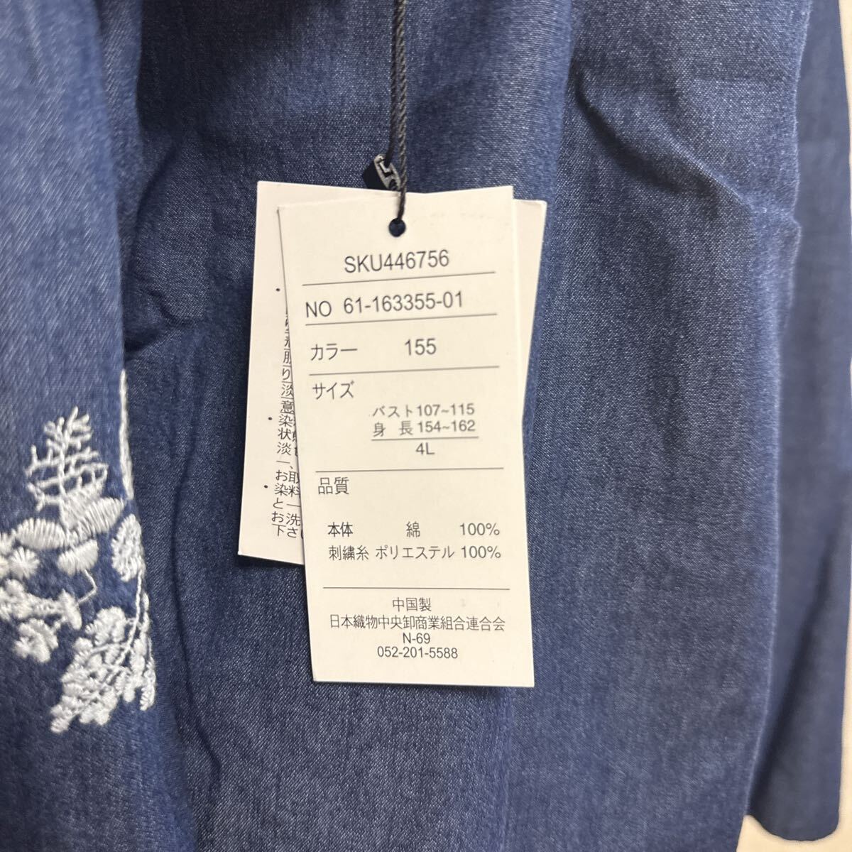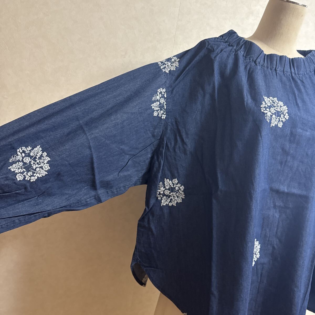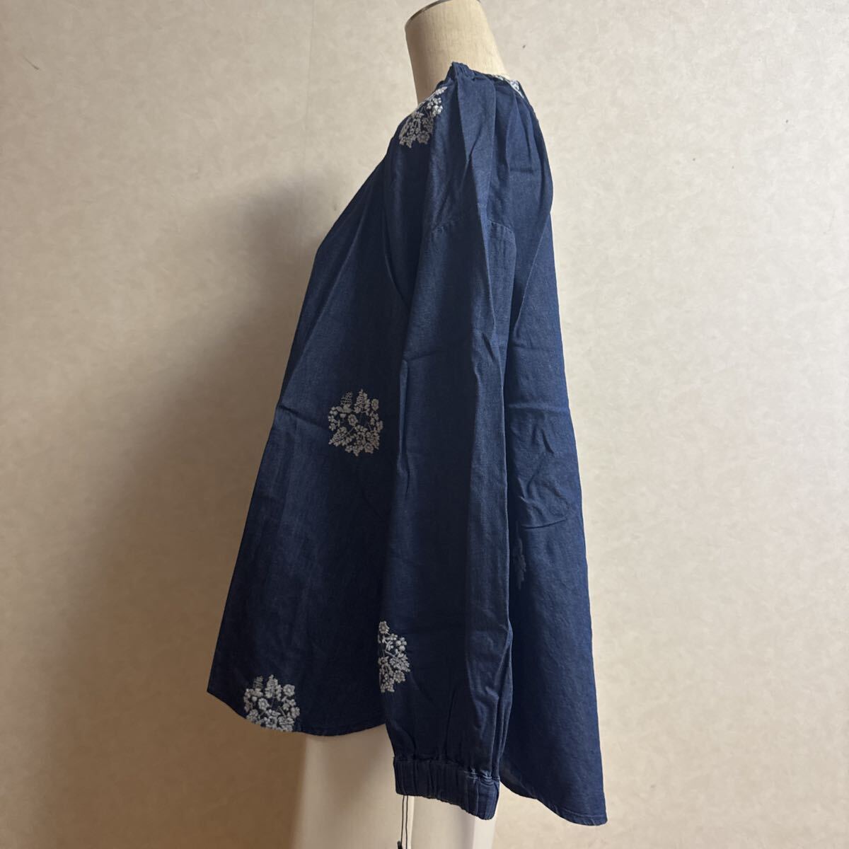 KN3249 *4L 大きいサイズ  トップス 長袖 ブラウス チュニック花柄、刺繍、シャーリングブラウス