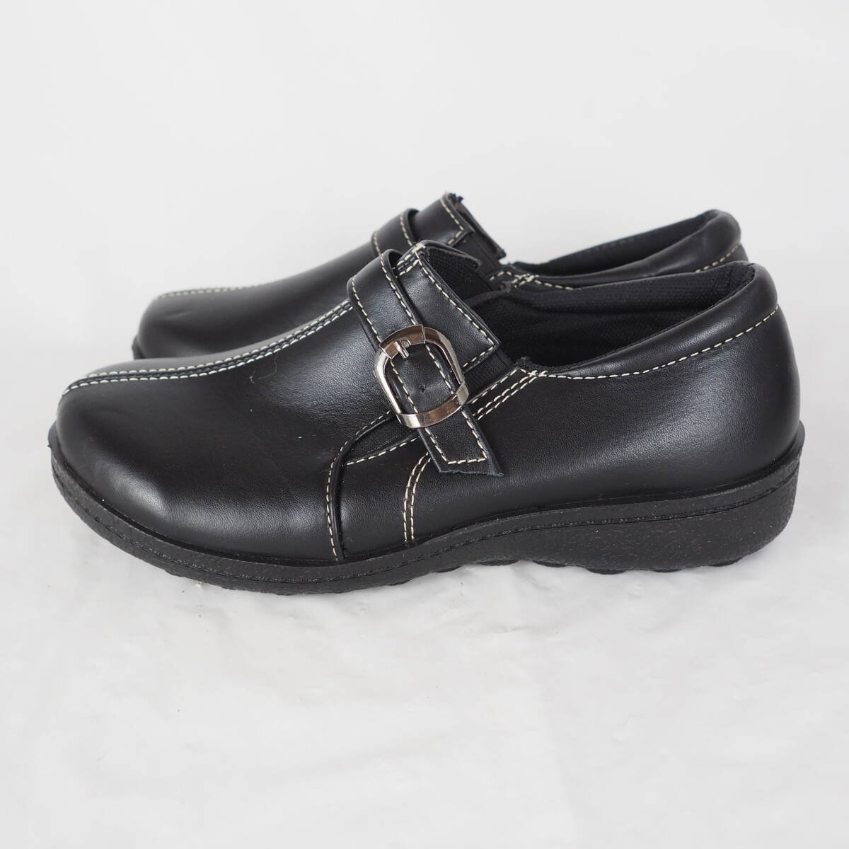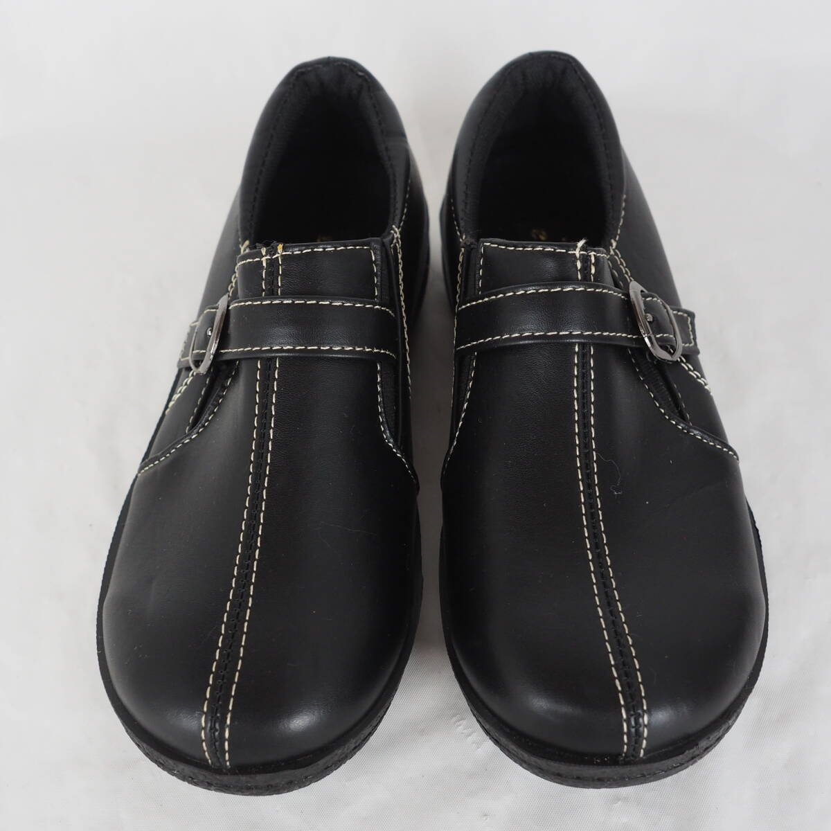 | ページをご覧いただきありがとうございます^^靴、ブーツを中心に出品しております。 ブラックにステッチとベルトデザインがアクセント。 履きやすいローヒールで、普段使いやお仕事にも活躍する一足です。 ☆商品詳細☆