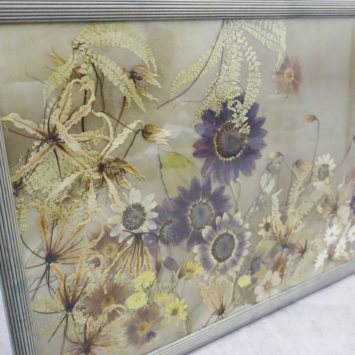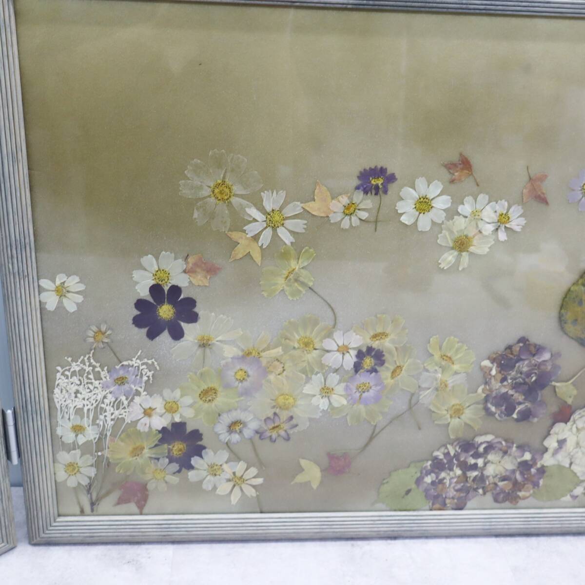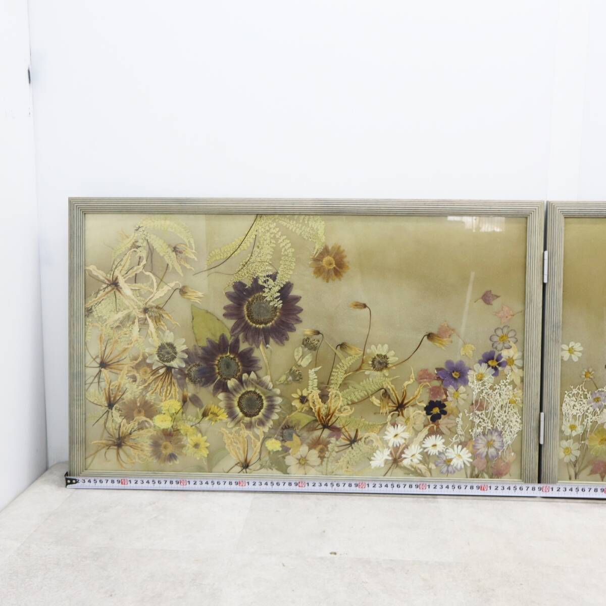 ▽インテリアに!!! 約158.5×49×2.5cm|2面屏風 押し花 |アートフラワー 押花 ハンドクラフト  木製アクリル額入り■P3343の出品です!