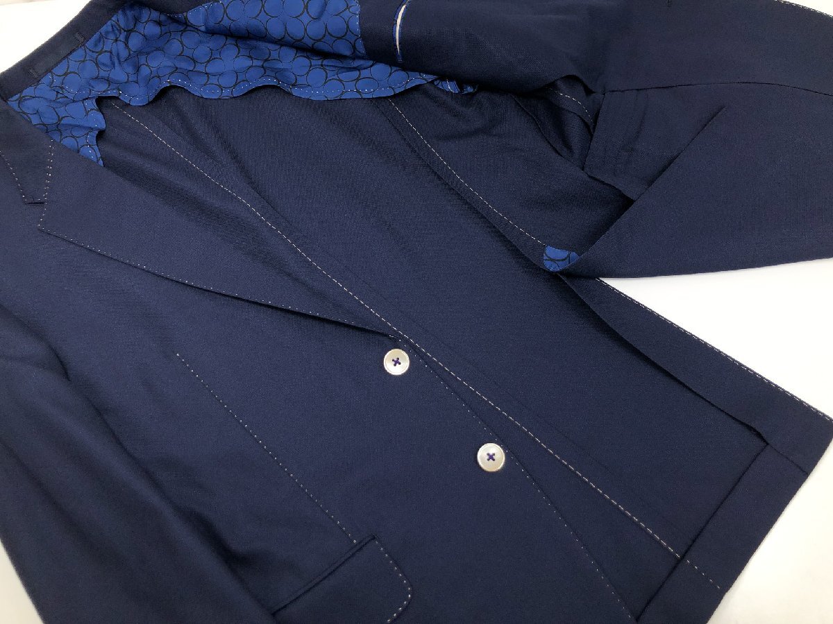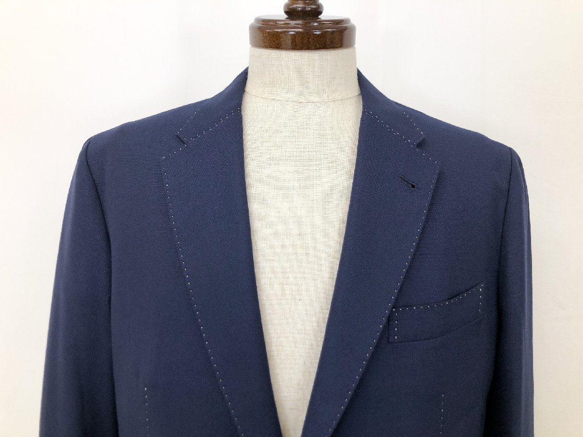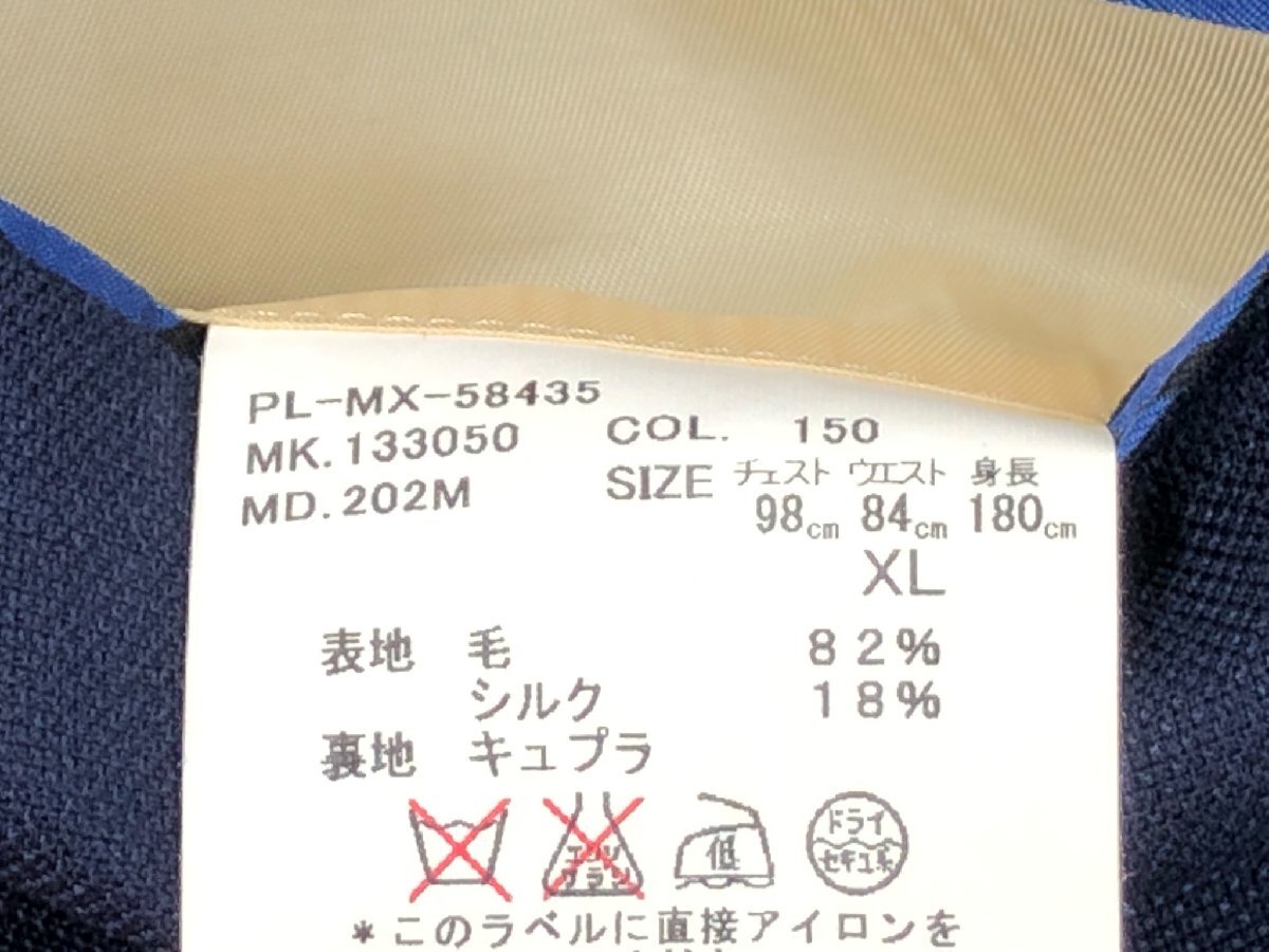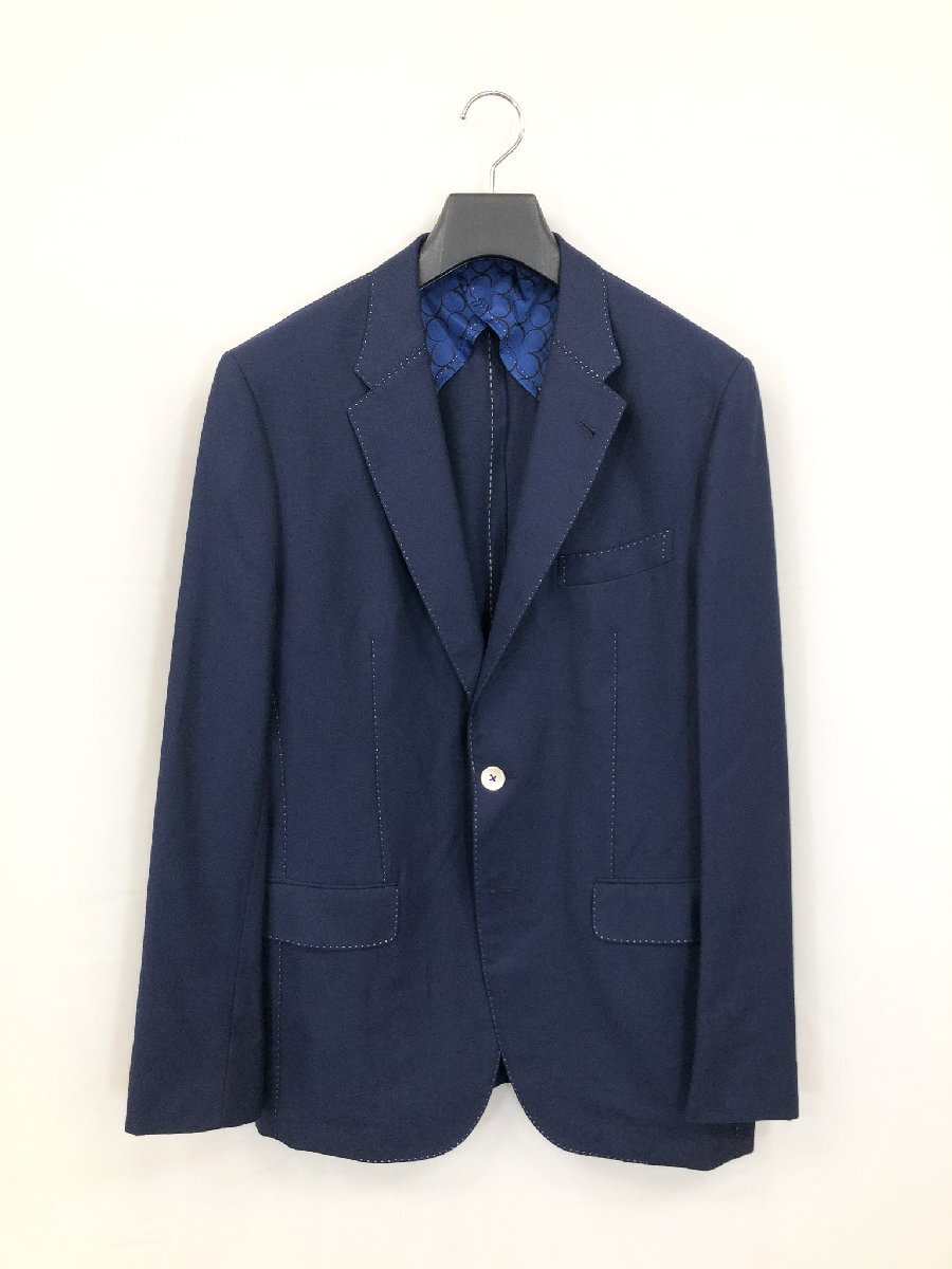 超美品【ポールスミスロンドン】MK.133050 絹18%混 2ボタン ステッチワーク ブレザー ジャケット(メンズ) sizeXL ネイビー系 ◇17MJ0626◇