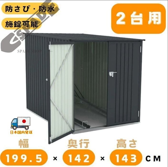 【国内発送】【スタンド搭載】自転車倉庫 2台用 物置 屋外 スチール 施錠可能 戸外収納庫 大型 収納庫 屋外物置 防さび 防水