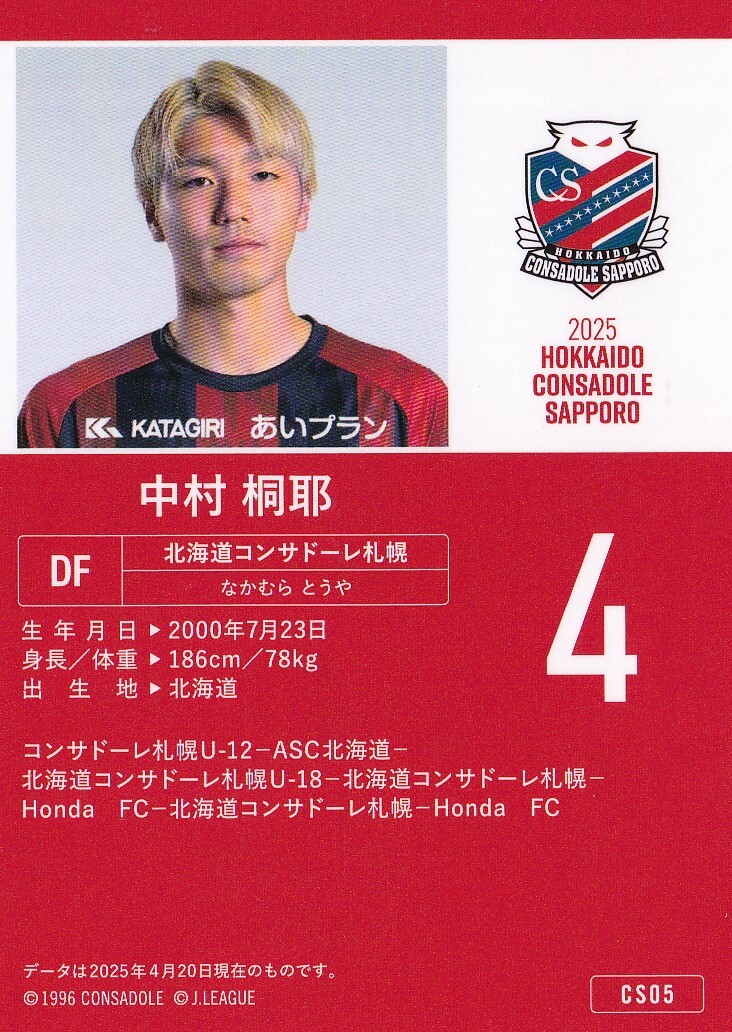 コンサドーレ札幌 2025 オフィシャル CS05 中村桐耶