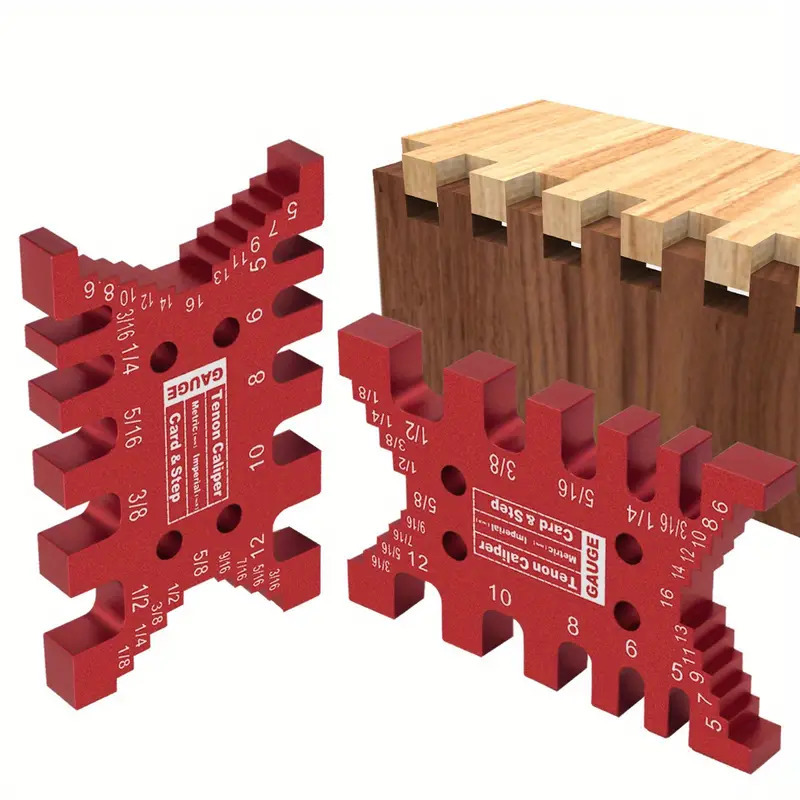 数量限定 新品 高精度 木工テノンキャリパーカードゲージ レッド 測定ツール 木工ルーター鋸テーブルマシン測定ツール トリマー定規 DIY 01