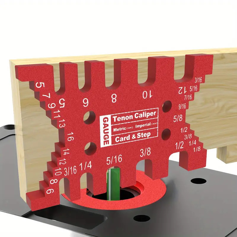 数量限定 新品 高精度 木工テノンキャリパーカードゲージ レッド 測定ツール 木工ルーター鋸テーブルマシン測定ツール トリマー定規 DIY 01