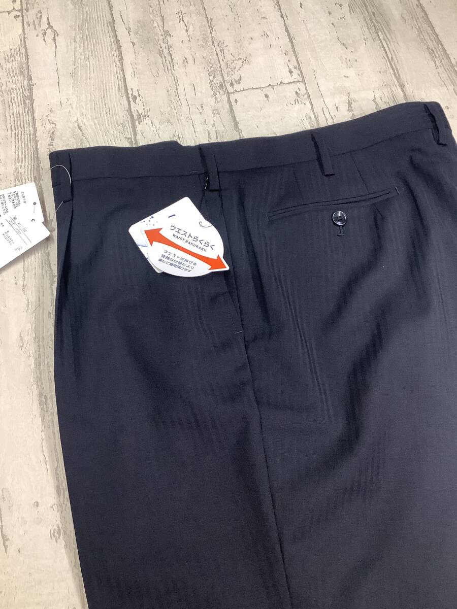 新品★ウエスト97cm ★濃紺ベース 細かいストライプ地柄 スラックス ★ ワンタック スラックス★