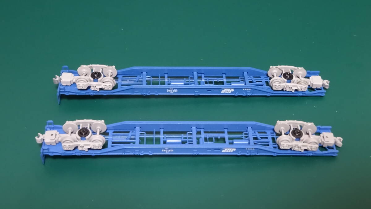 ・台車がプラスチック感があるためプライマー処理を行いGM製鉄道スプレーで塗装。