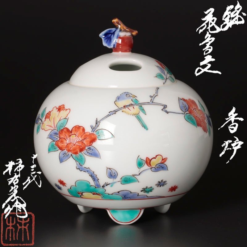 【古美味】人間国宝 十三代酒井田柿右衛門作 錦 花鳥文香炉 茶道具 保証品 |